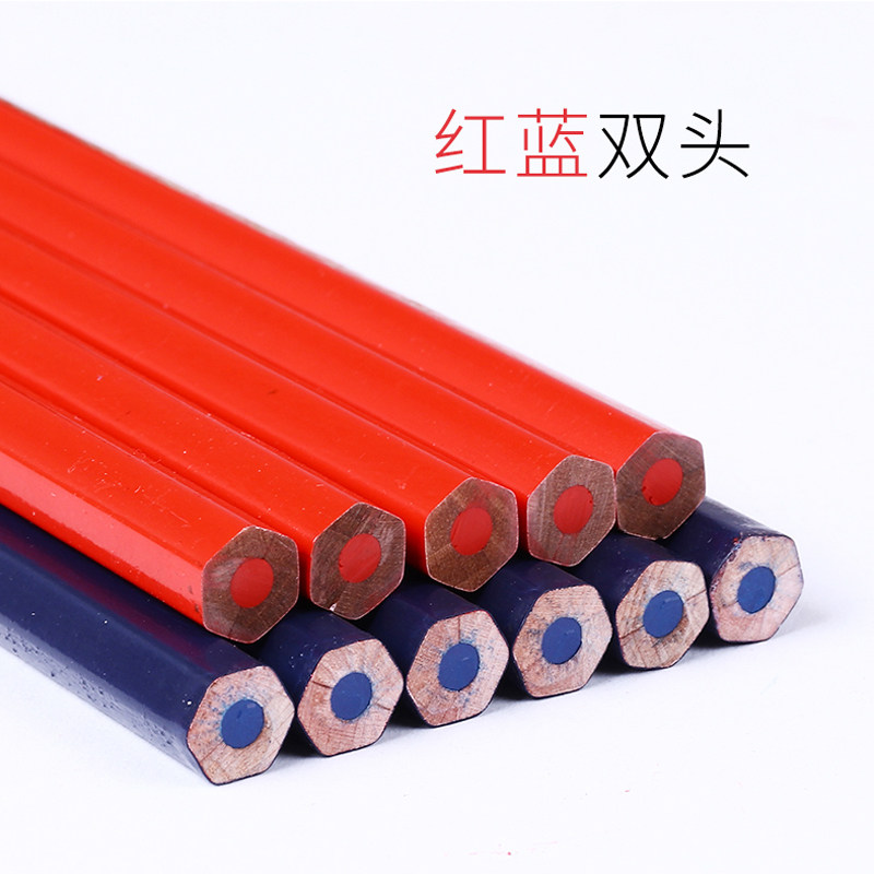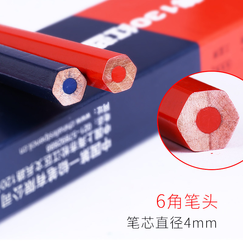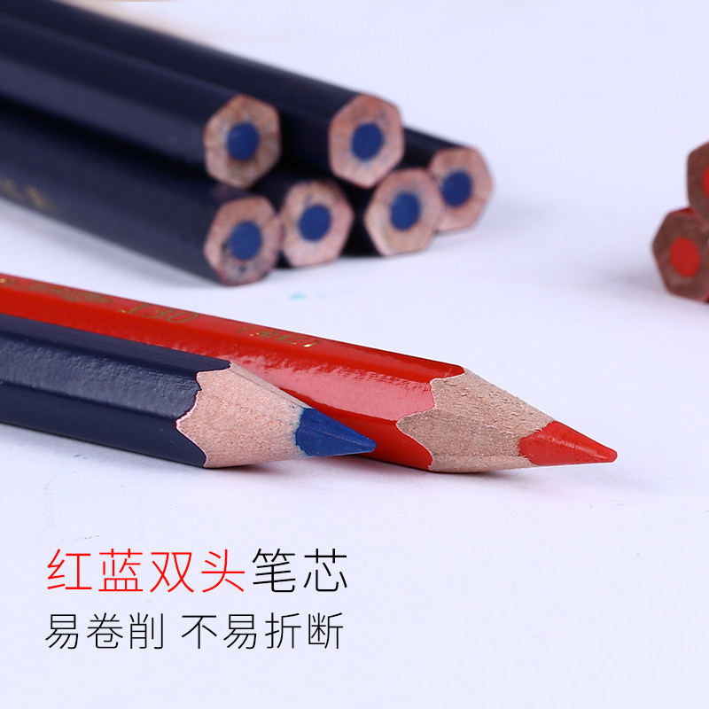 中华牌130红蓝铅笔特种铅笔140加粗杆六角木质施工双色铅笔写字绘图美术画画双头木工笔工业划线硬全红记号笔