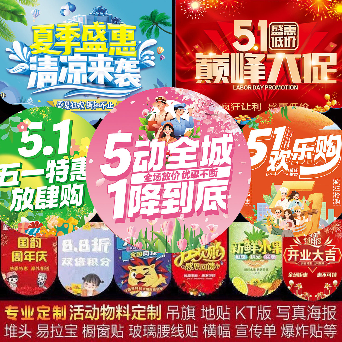 51吊旗定制盛大开业拉彩旗KT海报广告县挂杆活动周年庆五一装饰