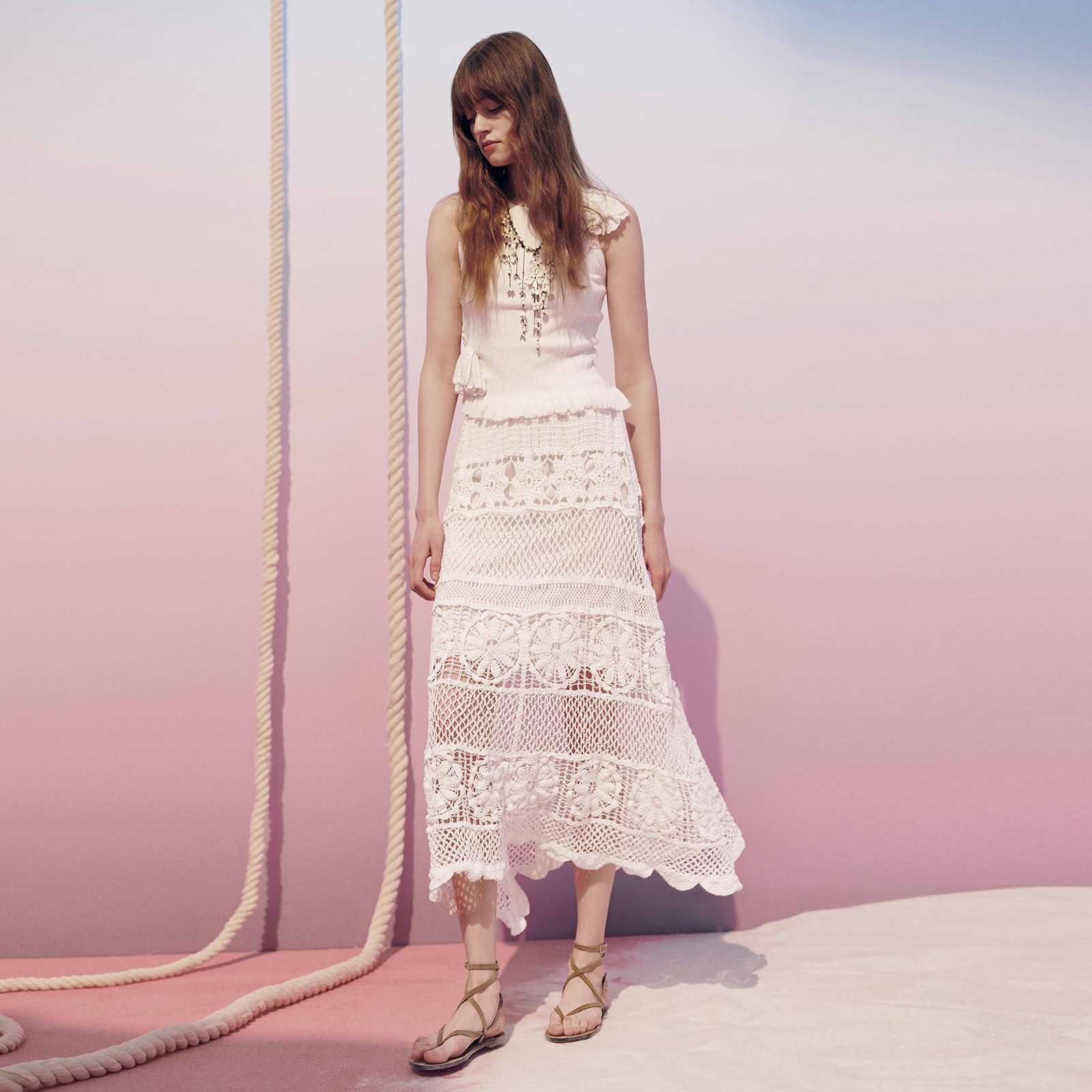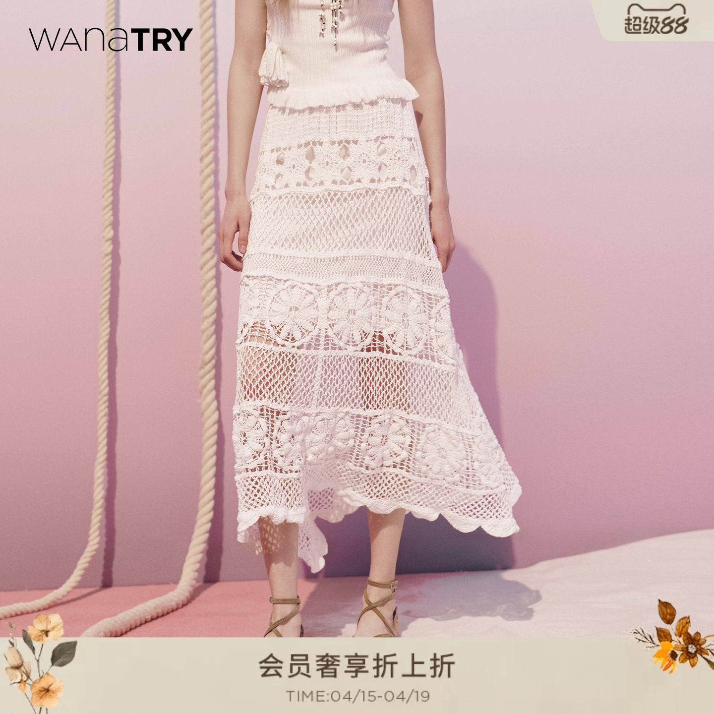 wana try 白色针织镂空勾花半裙2026夏季新款温柔简约半身裙