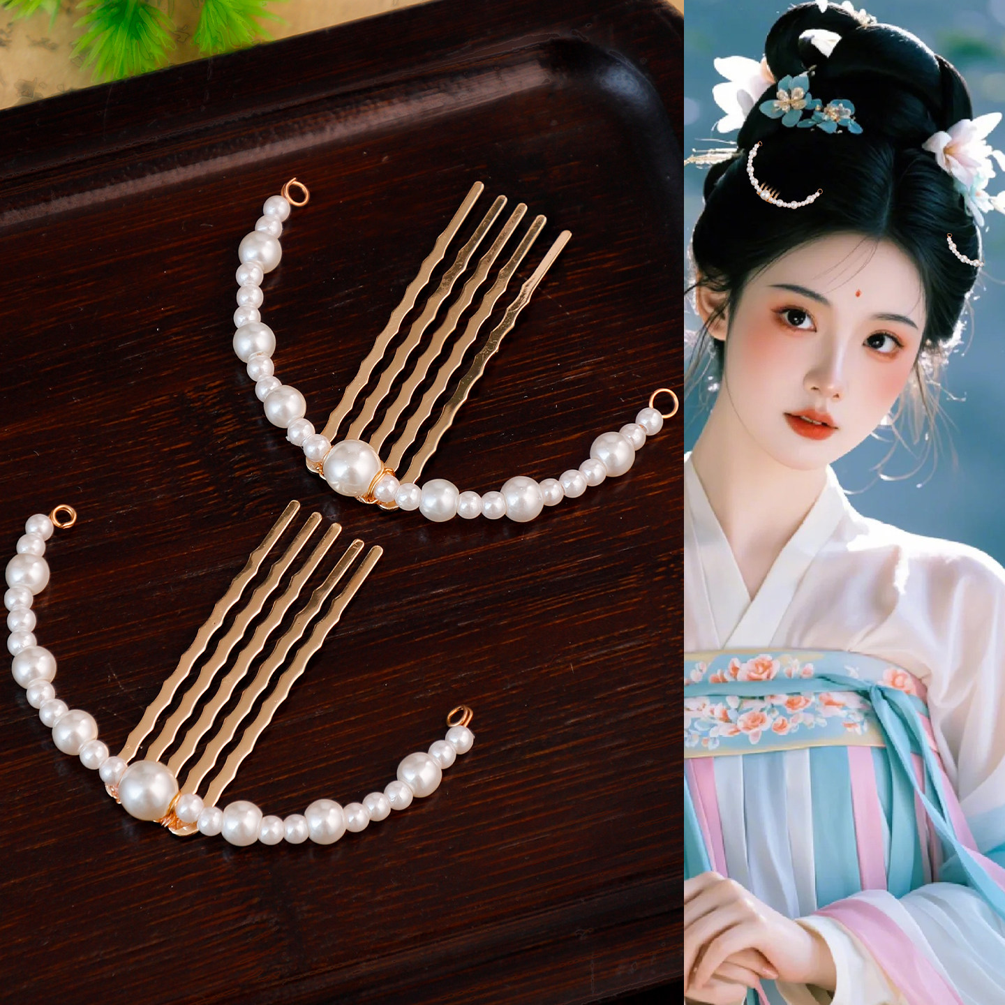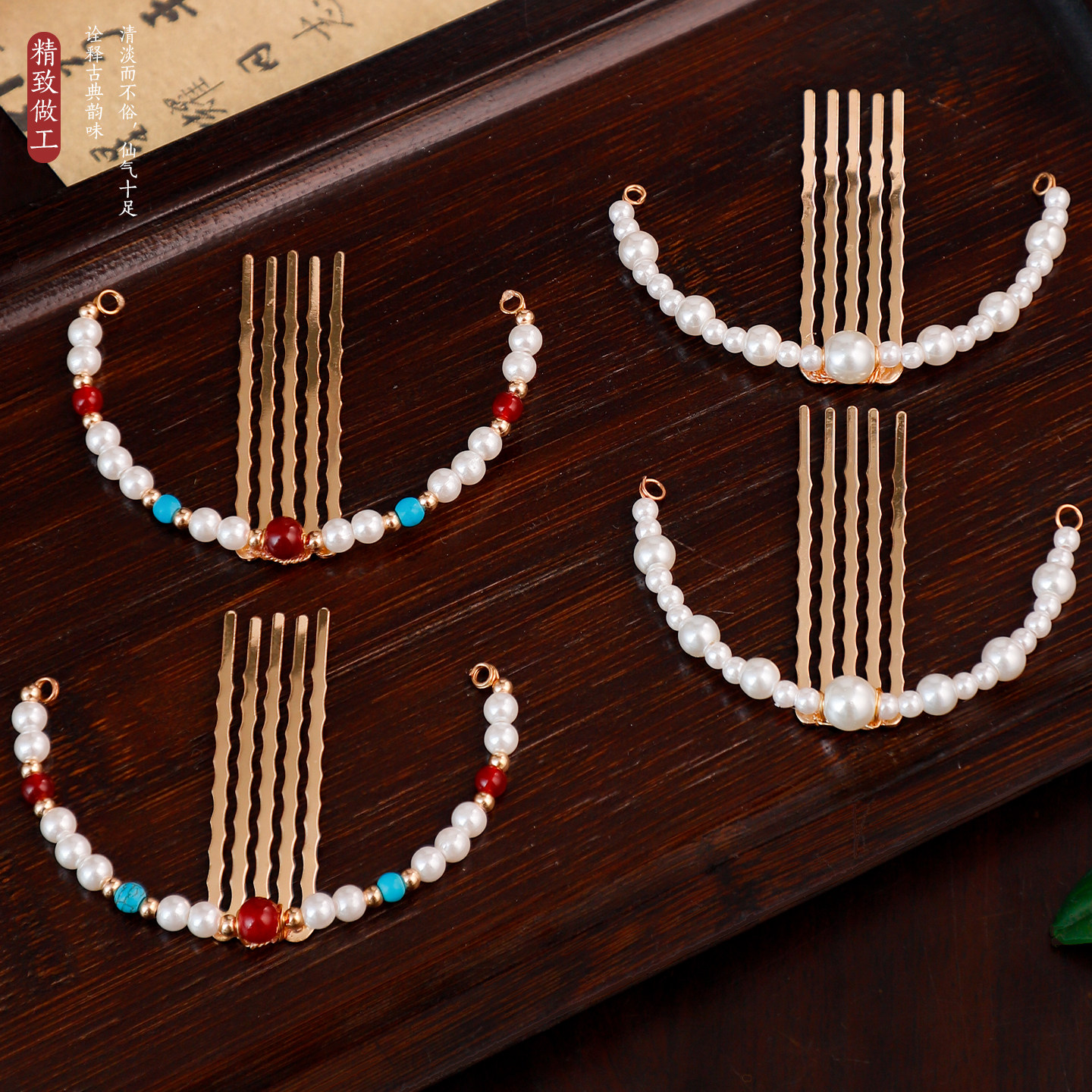 复古唐风写真造型配饰古风汉服仿珍珠插梳掩鬓发饰明制写真头饰女