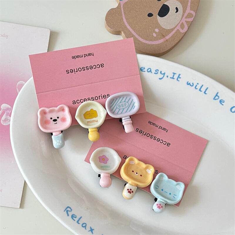 卡通平底锅发夹可爱软萌小熊小猫奶锅发饰趣味仿真厨具发卡发饰