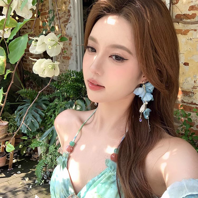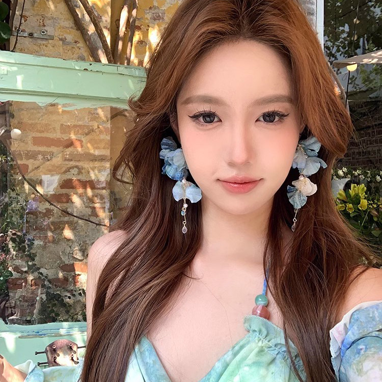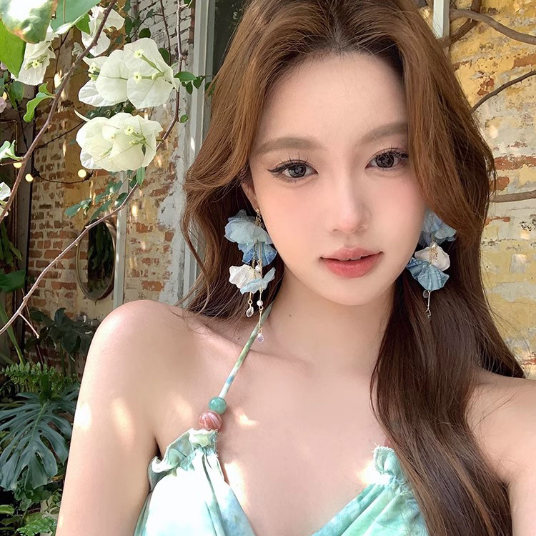 夏日蓝色花朵流苏耳环2025新款绝美夸张海边度假风耳饰夏天耳环