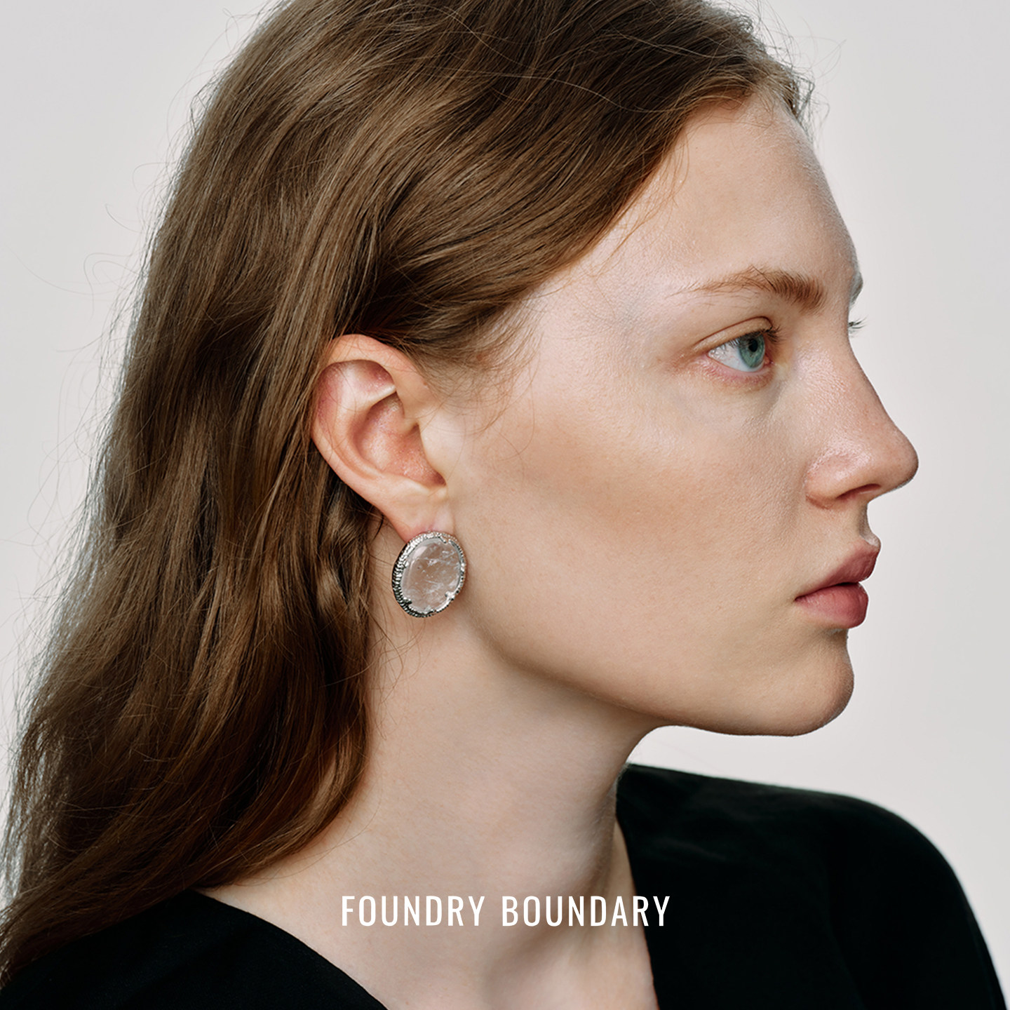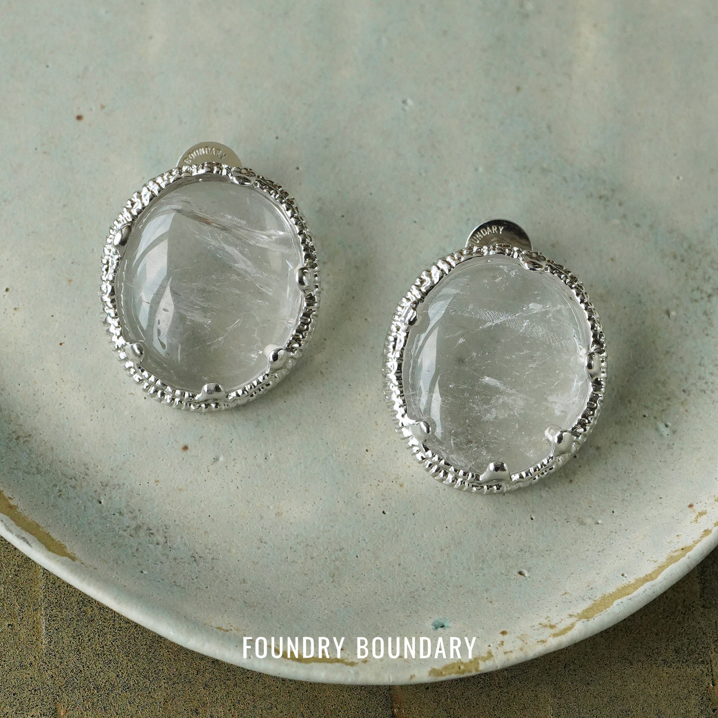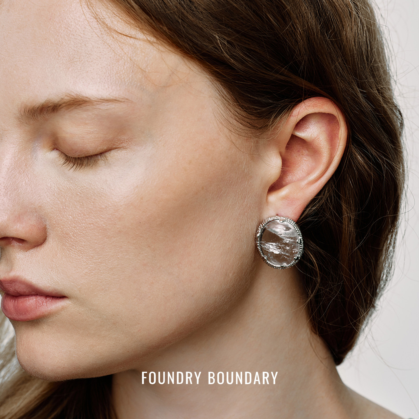 FOUNDRY BOUNDARY 圆冰片耳钉 纯银白水晶原创设计师小众耳环默叙