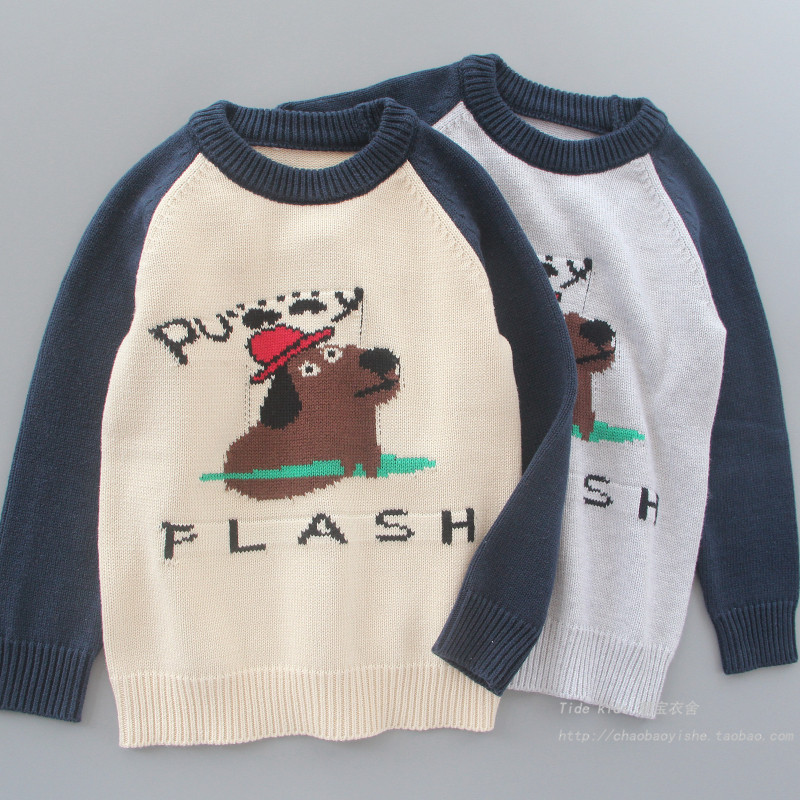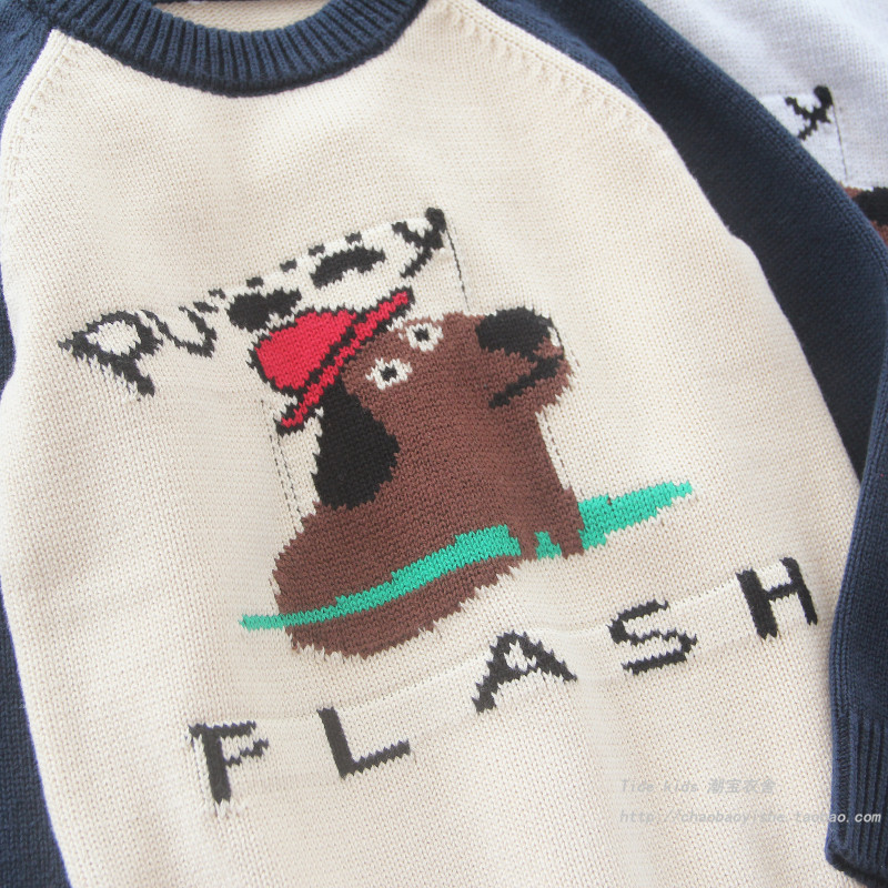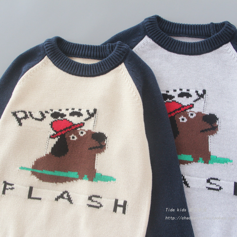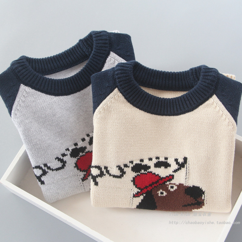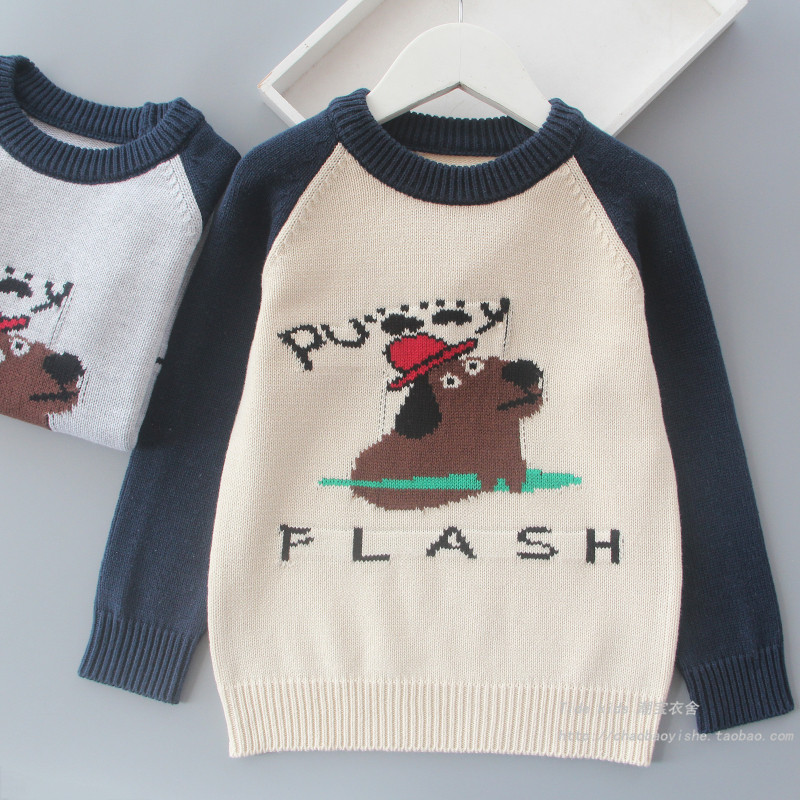 男童纯棉毛衣春秋装新款儿童插肩袖狗狗提花打底衫男孩洋气针织衫