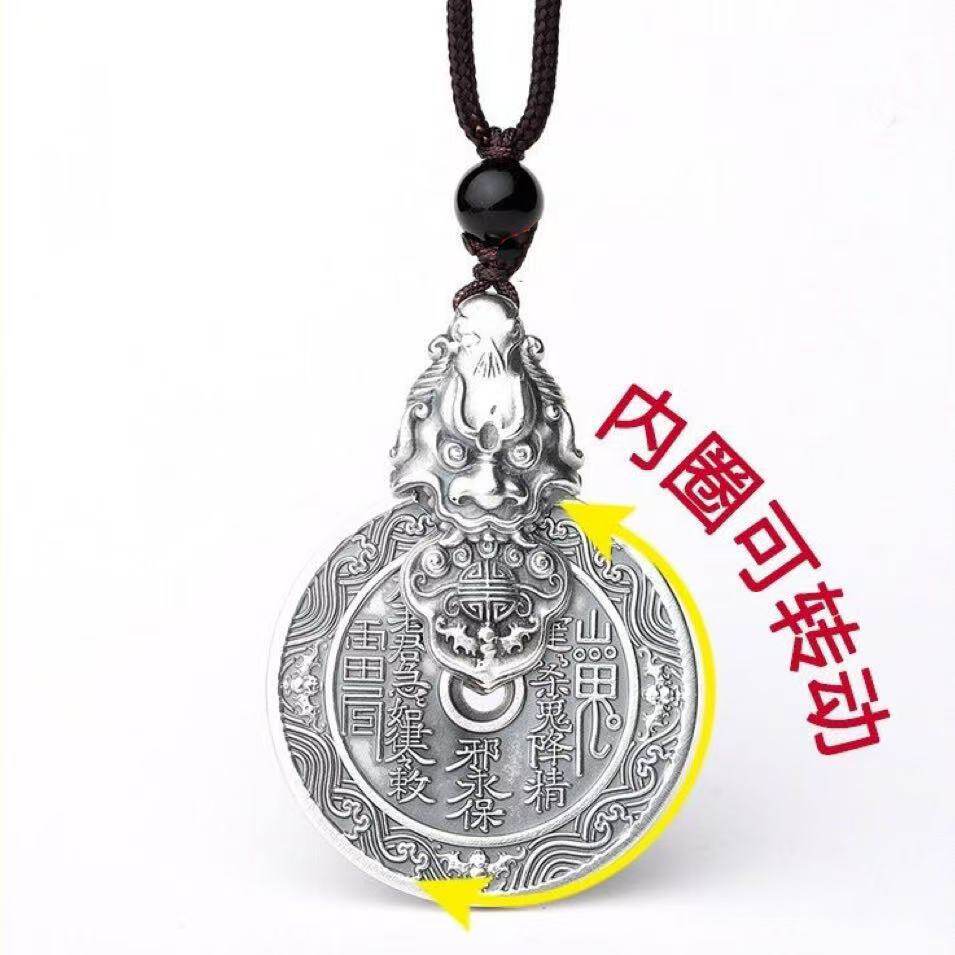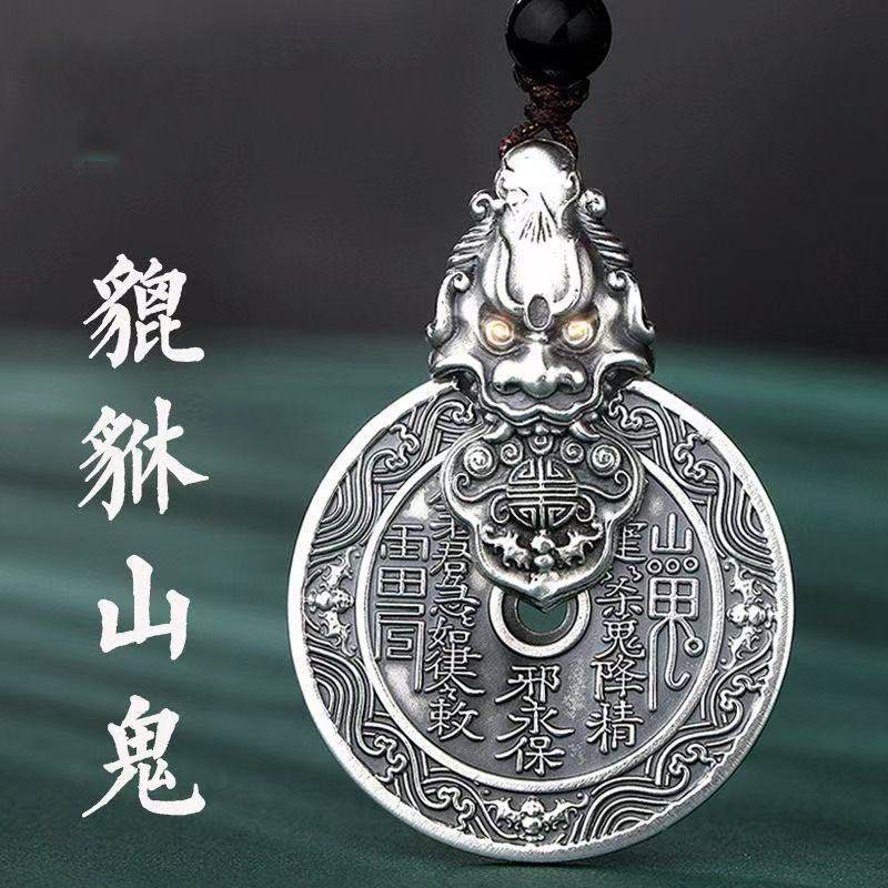 祥瑞寓意山鬼花钱钥匙扣复古貔貅挂件创意金属小挂件招财进宝吊坠