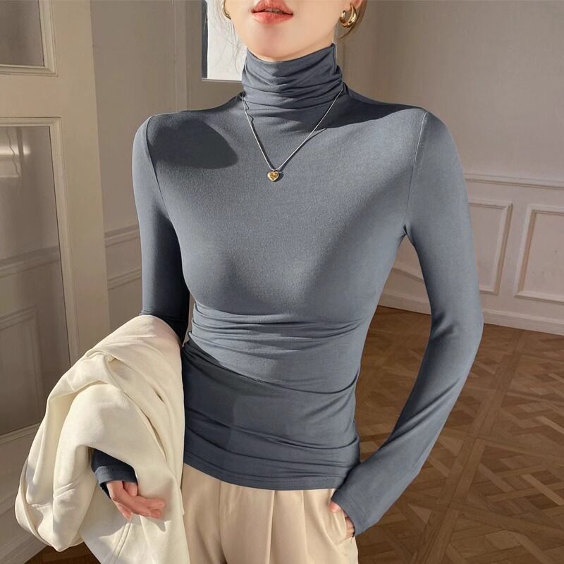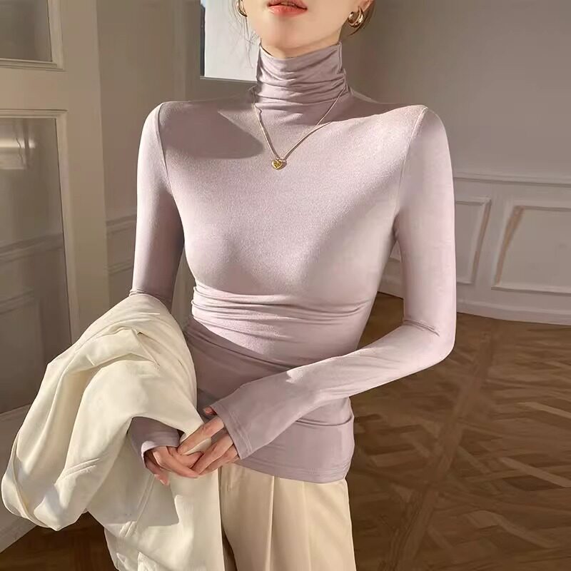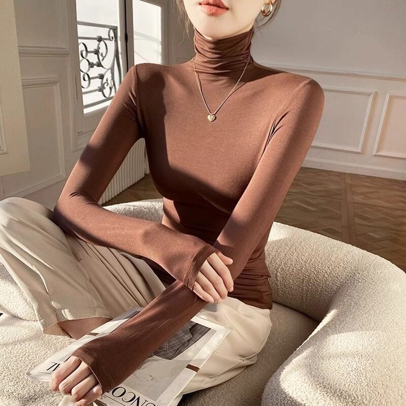 拉夏贝尔高领打底衫女内搭秋冬新款黑色洋气加绒保暖长袖t恤上衣