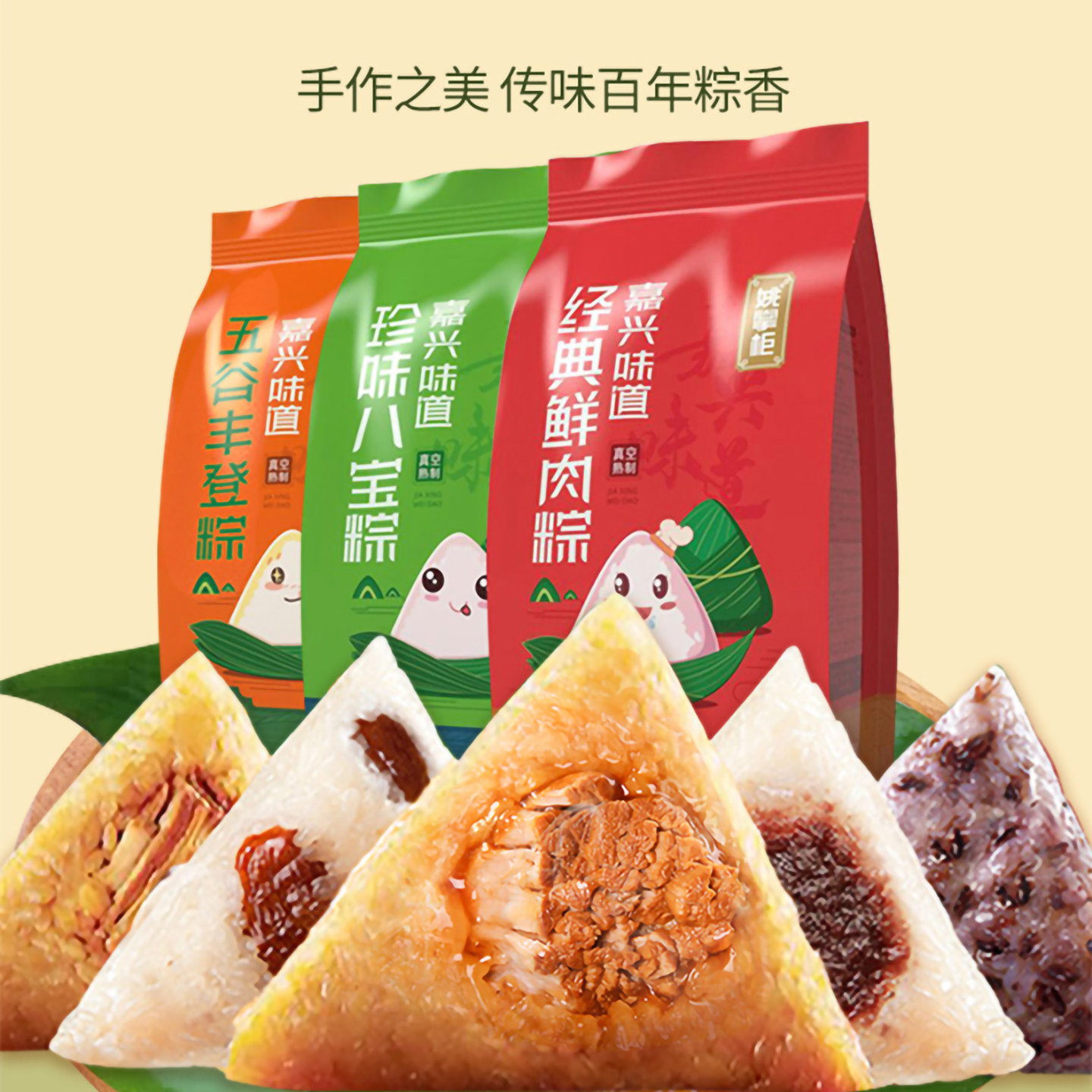 嘉兴粽子咸蛋黄鲜肉粽子蜜枣豆沙粽梅干菜鲜肉粽板栗鲜肉粽白米粽
