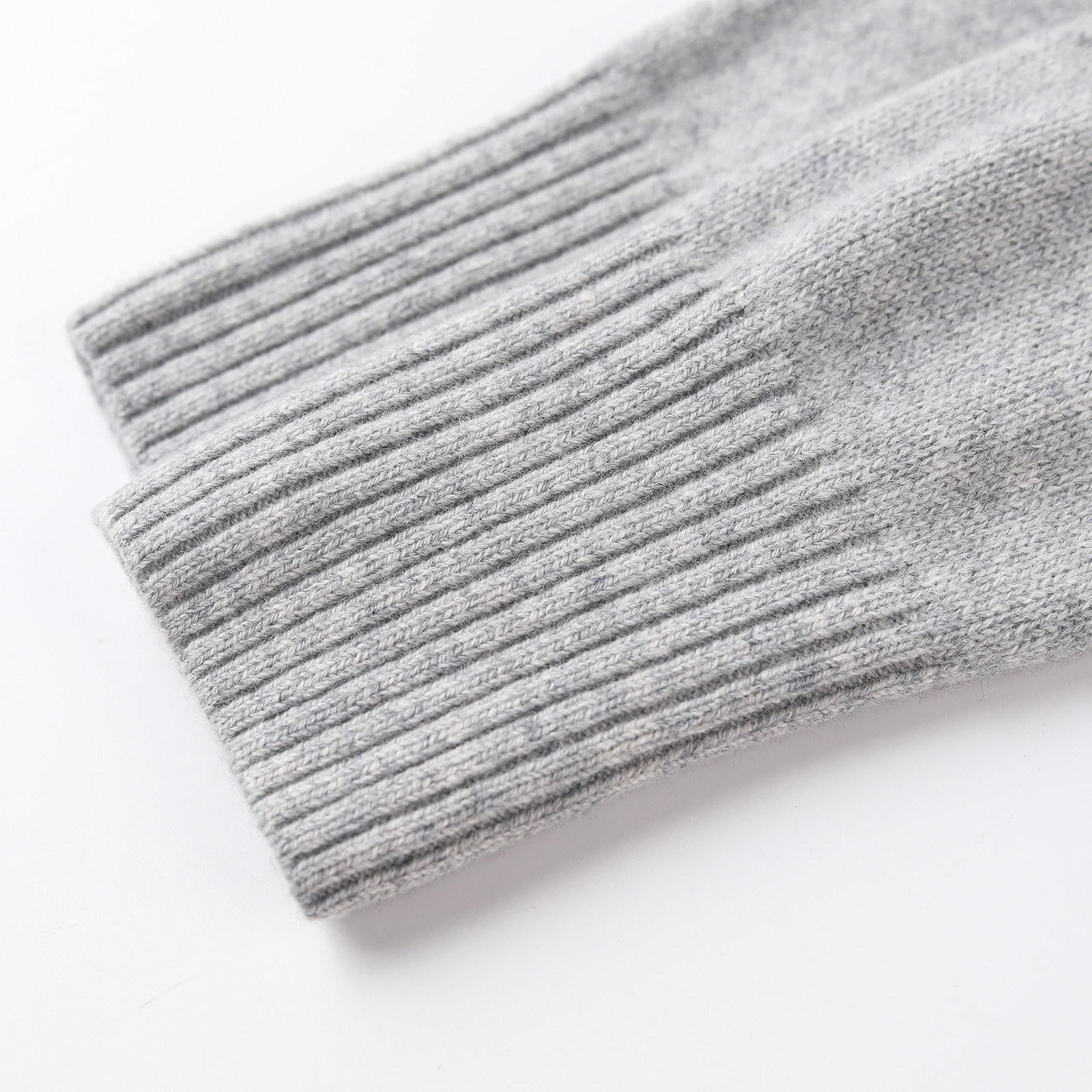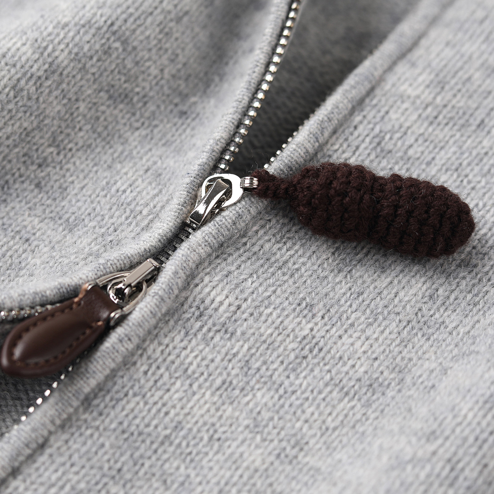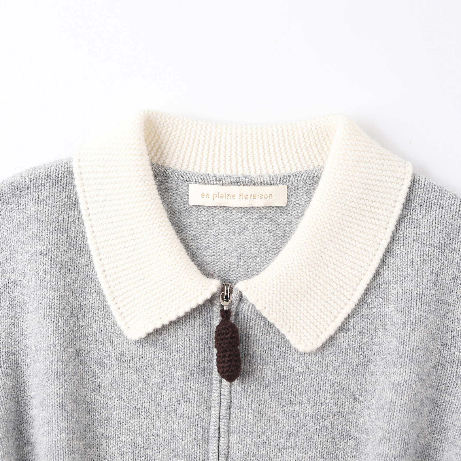 wana try100%绵羊毛撞色领双拉头针织开衫浅灰色2025冬季新款女装