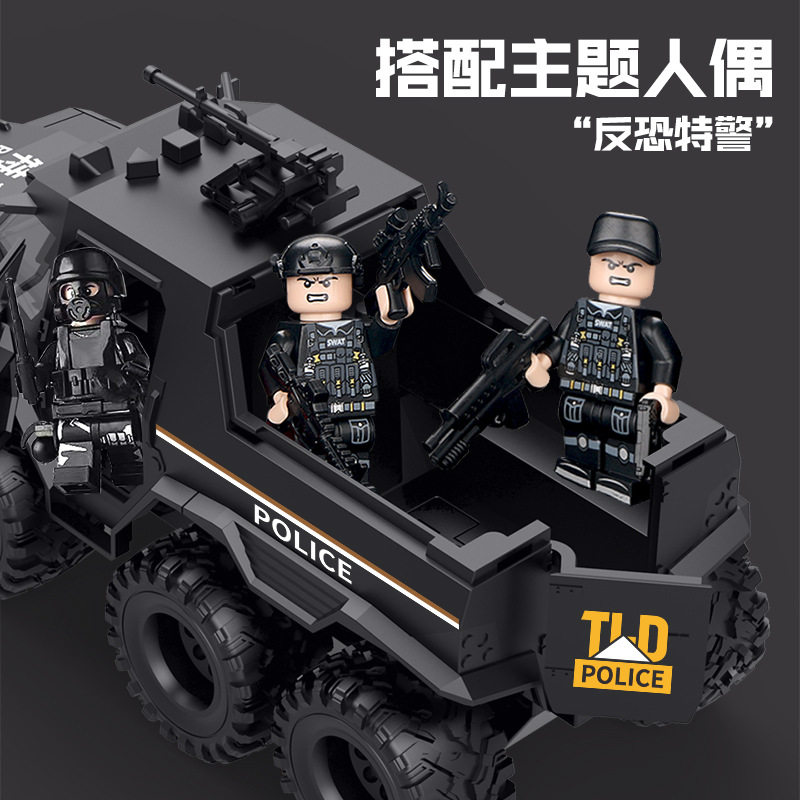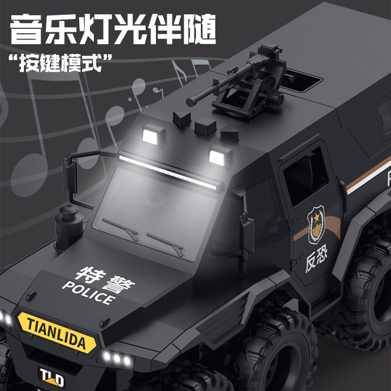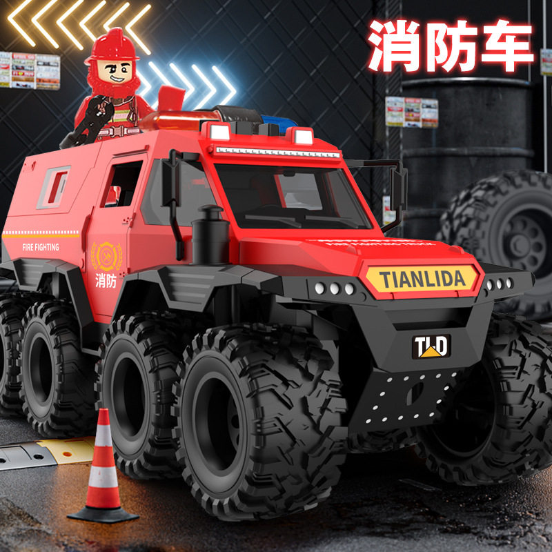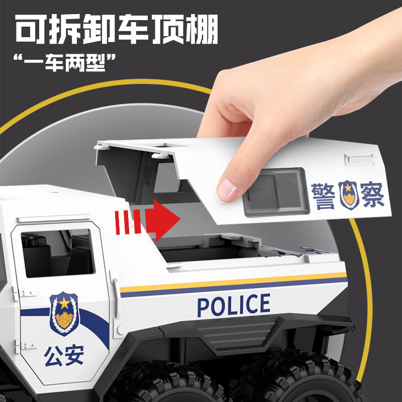 八轮胎可开门装甲车武警车儿童玩具惯性声光越野消防公安车配公仔