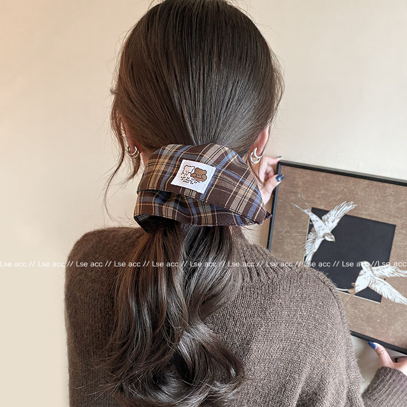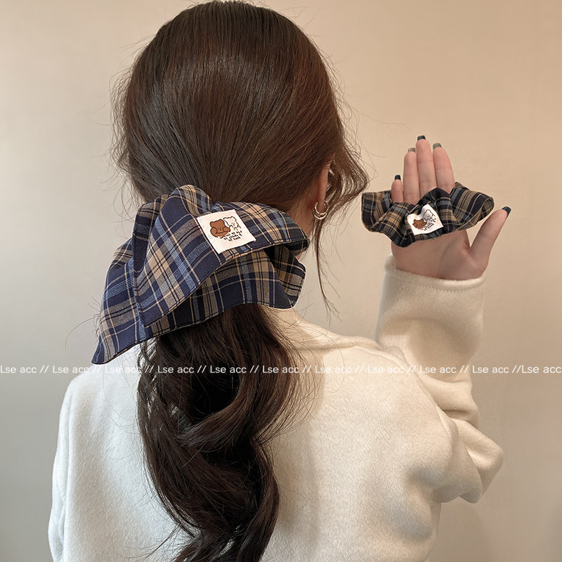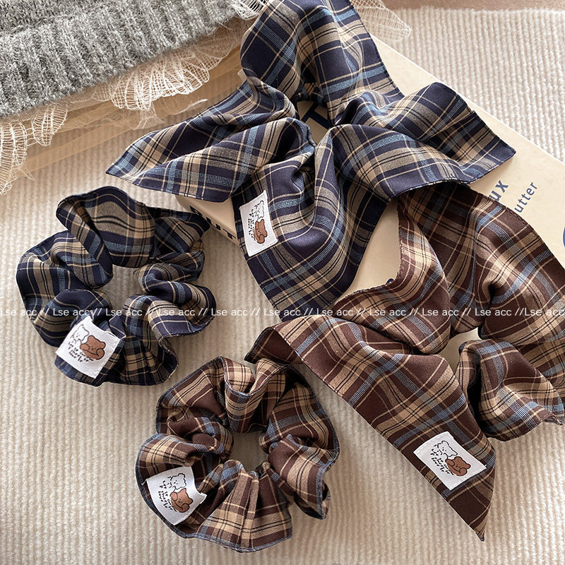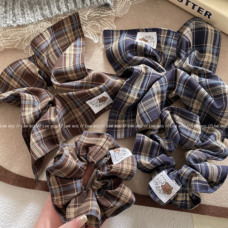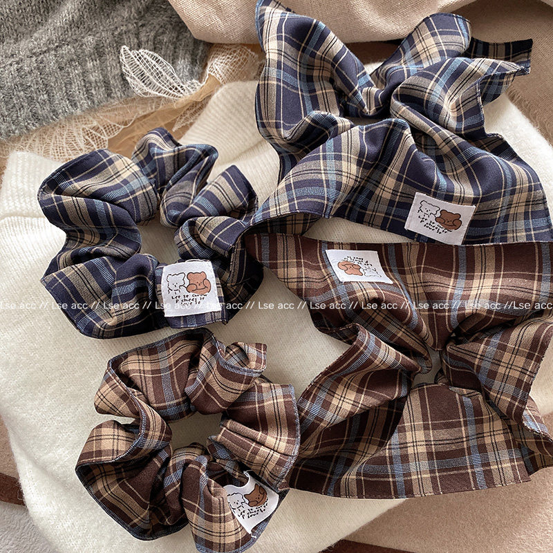 格纹小熊大肠发圈头绳高端发绳耐用橡皮筋扎头发女生皮套头饰发饰