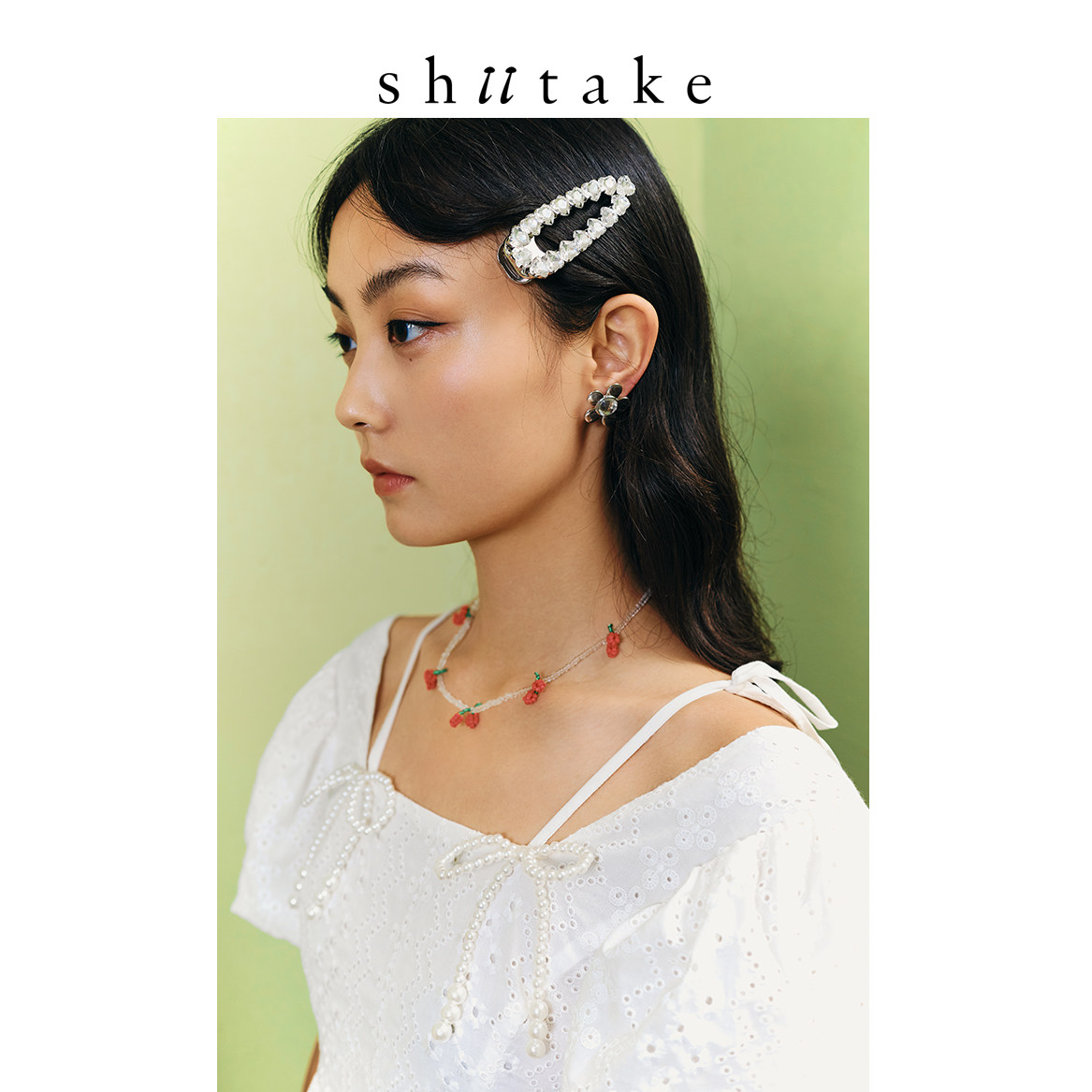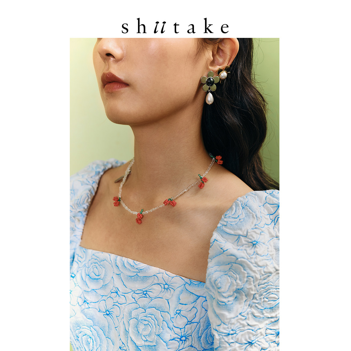 Shiitake诗塔克设计师品牌串珠樱桃透明项链夏日特典