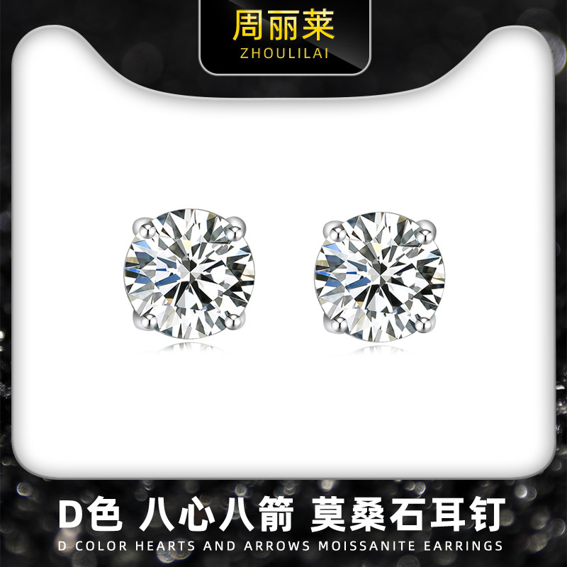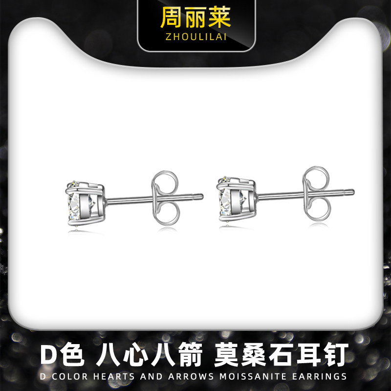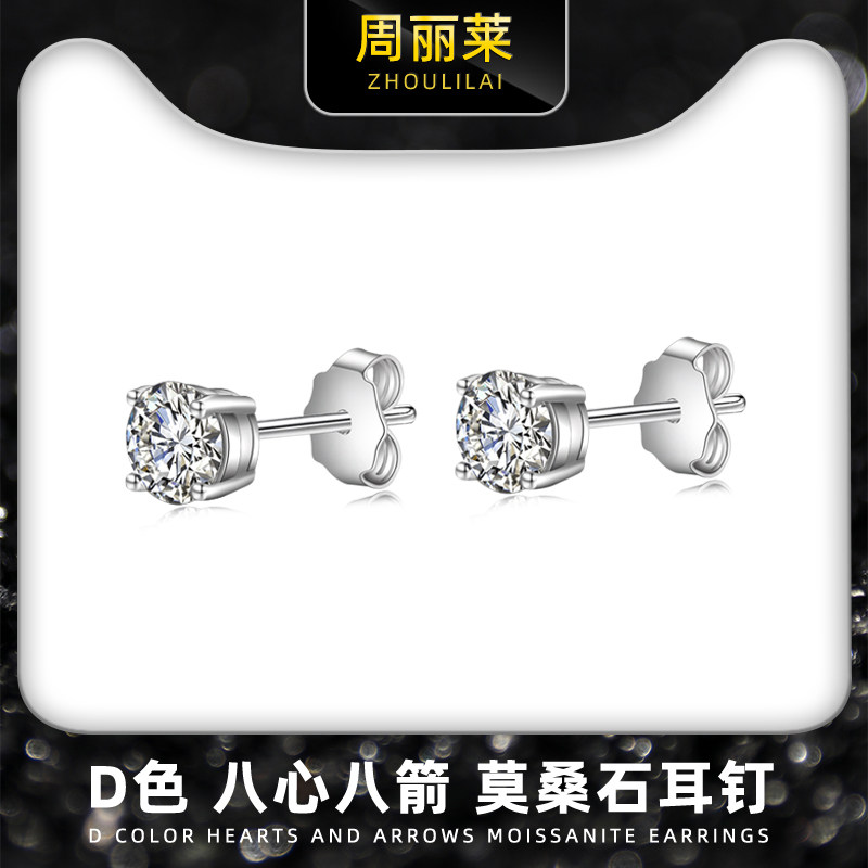 莫桑石耳钉女夏气质S925银四爪30分简约小众轻奢耳饰生日礼物