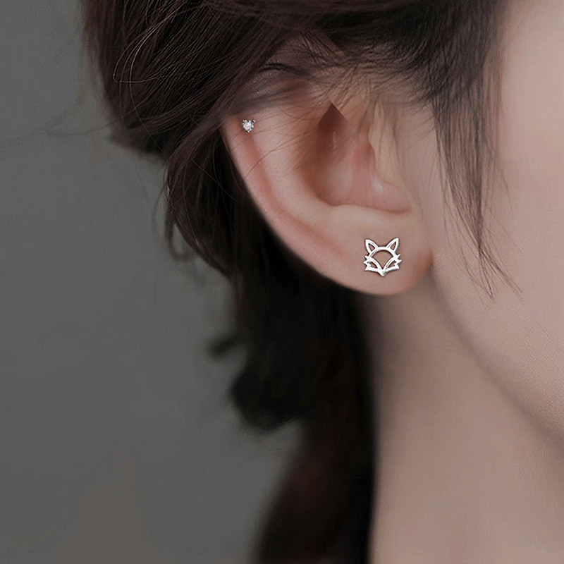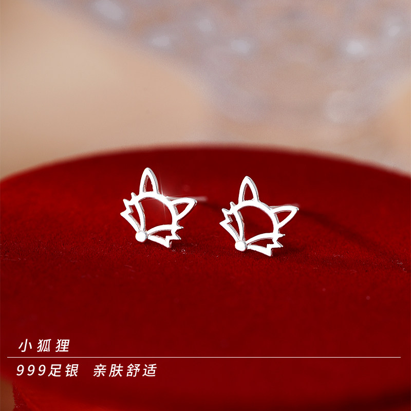 Z小姐999足银狐狸耳钉养耳洞睡觉免摘耳骨饰品纯银耳饰女2025新款