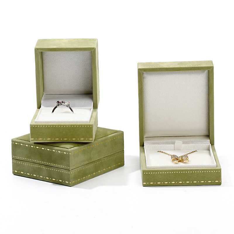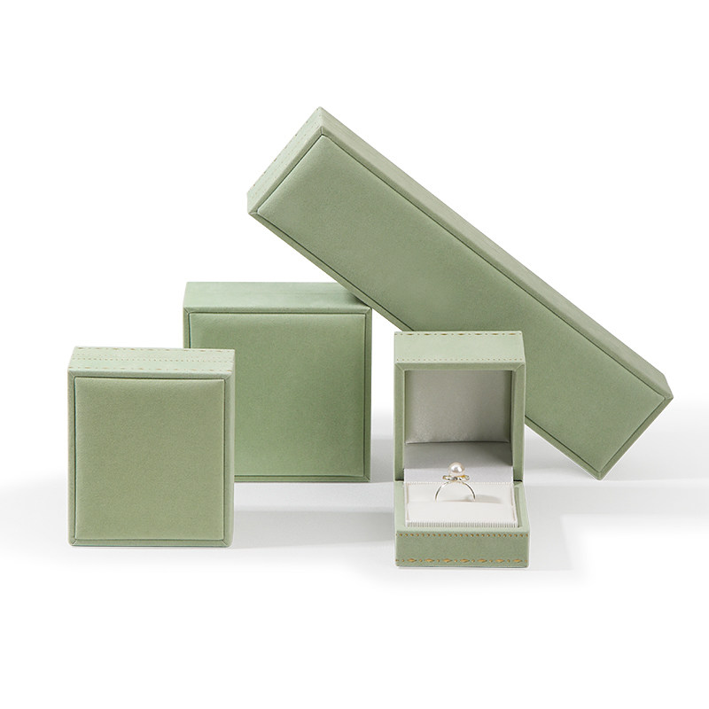 轻奢青草色珠宝首饰盒绒布高档婚嫁耳钉手镯项链手链戒指礼品盒