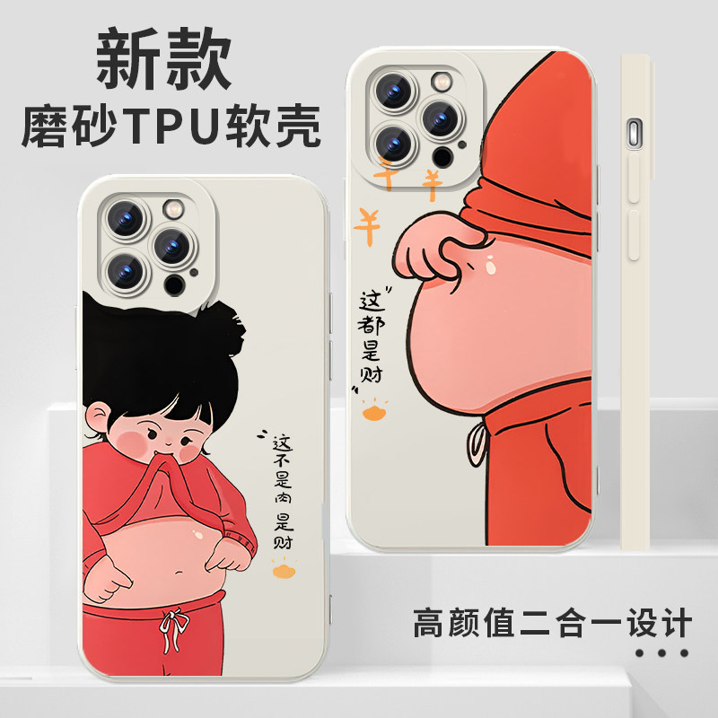 搞怪肥肉是财手机壳适用苹果16华为mate60周边iPhone17promax胖子vivo14胖OPPO小米15p情侣13情侣款12红米k70