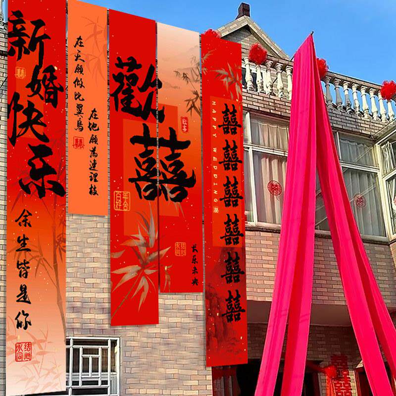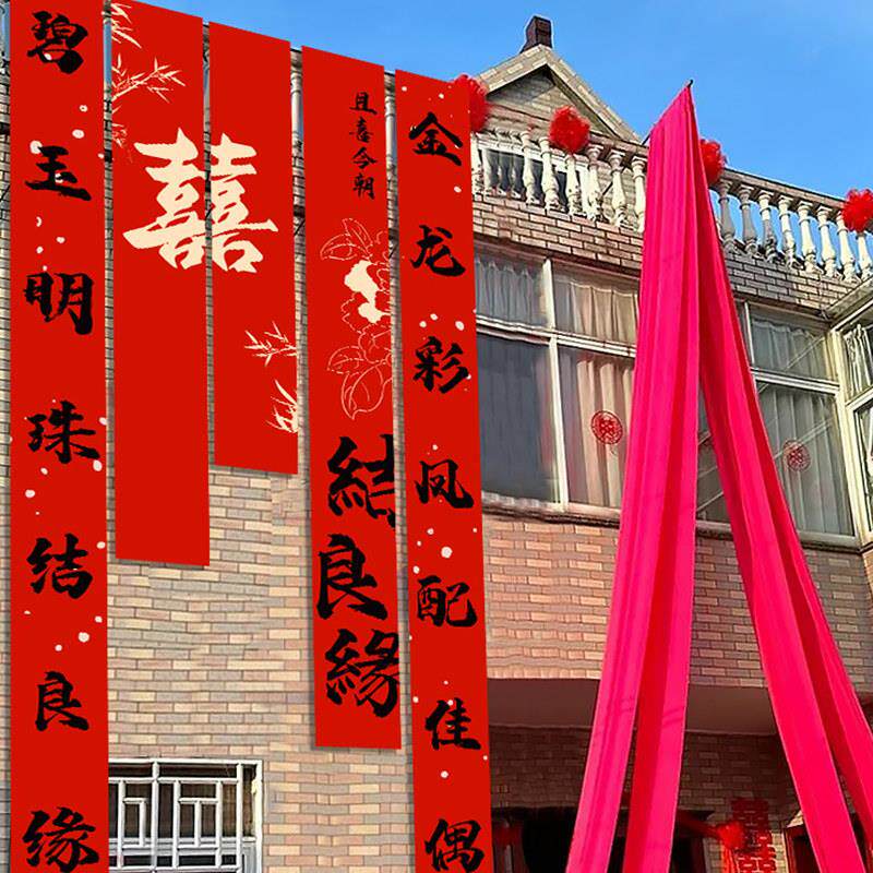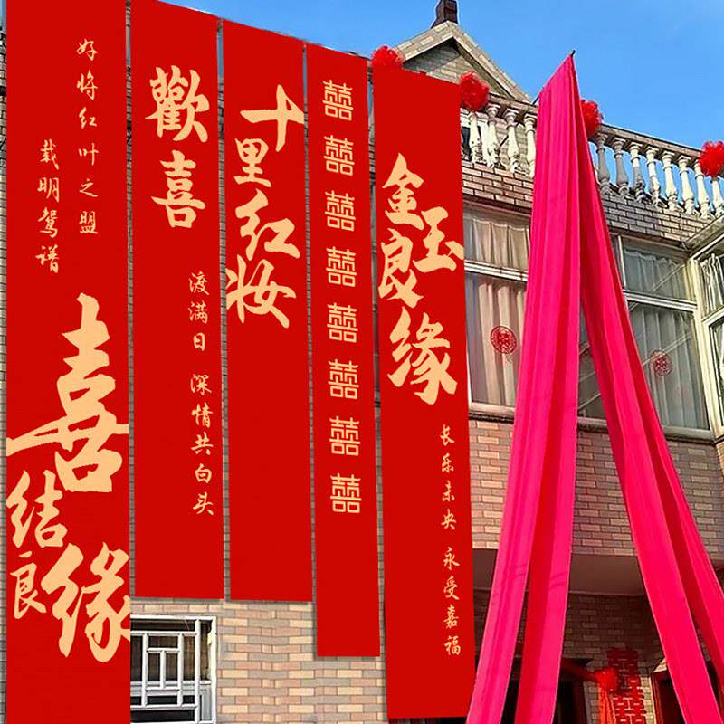 室院子农村庭院婚礼F98TH8MM布装置饰自建房婚条幅结挂布外户外拉