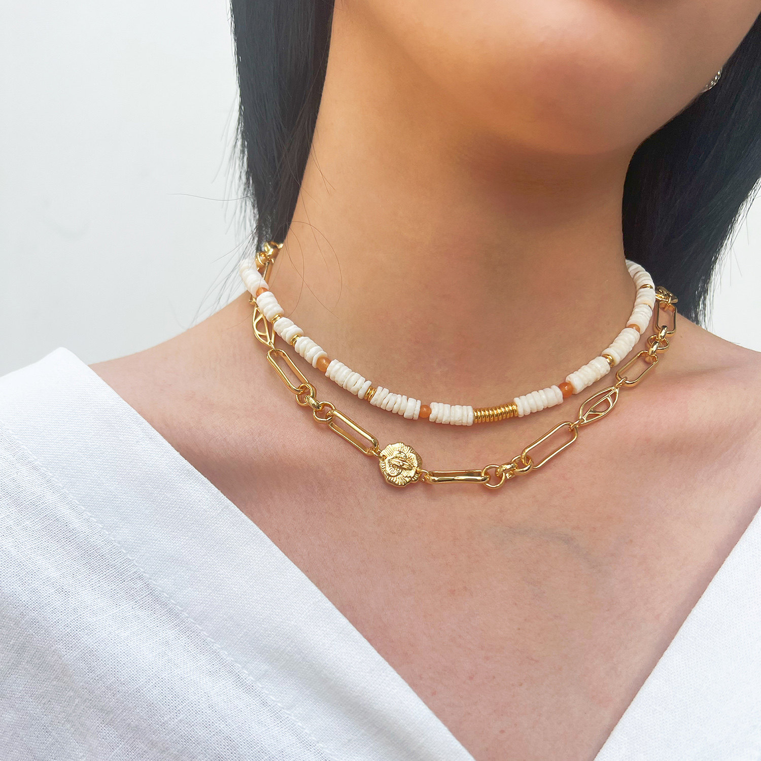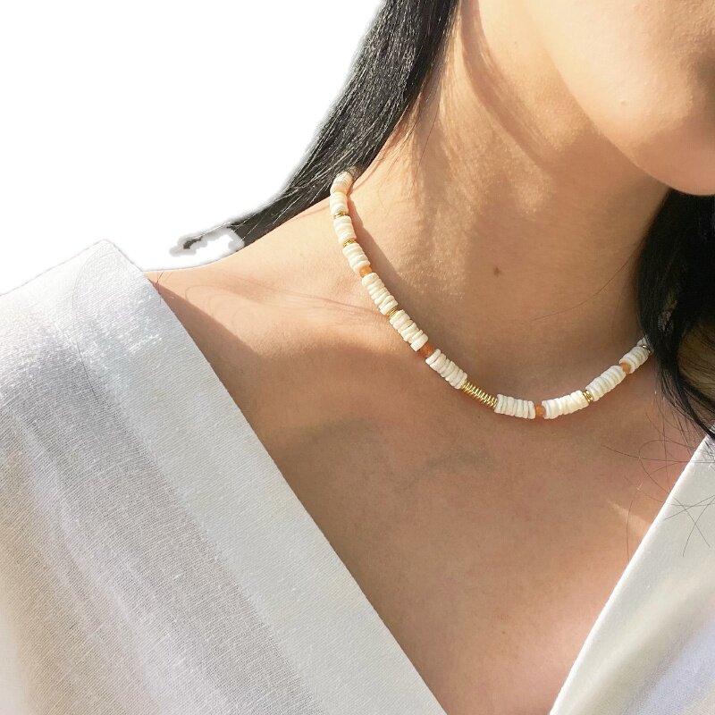 「珠璃」维纳斯白色贝壳串珠项链项圈简约气质叠戴度假风饰品