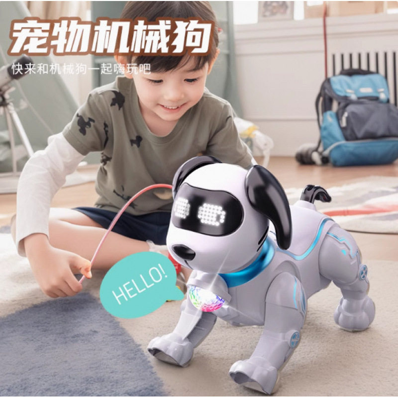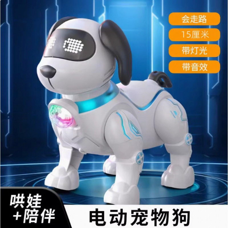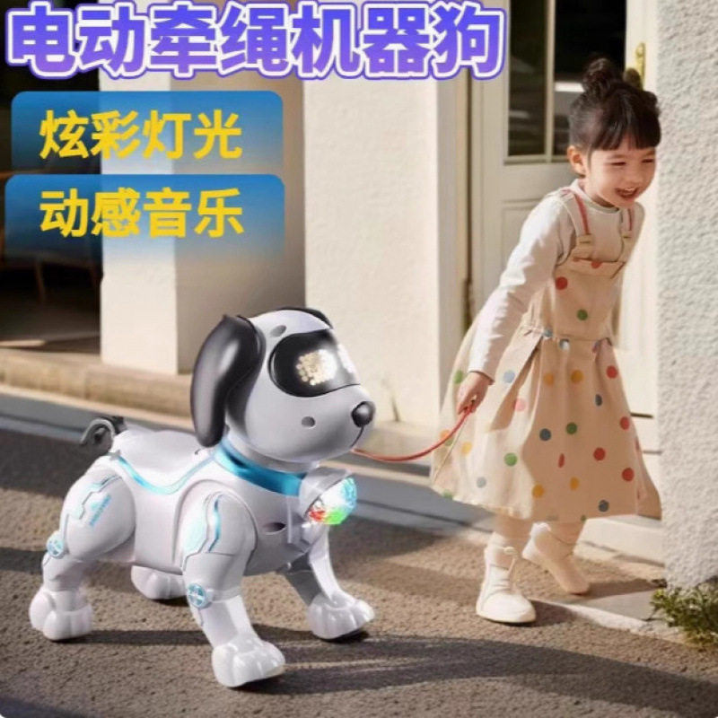 新款儿童电动玩具牵绳宠物狗走路发光玩具机械狗夜市地摊批发现货