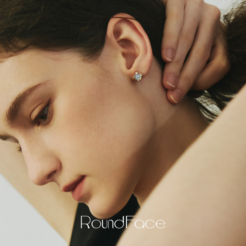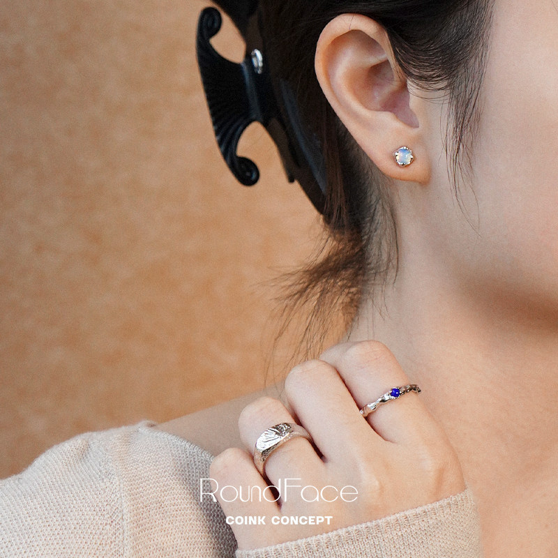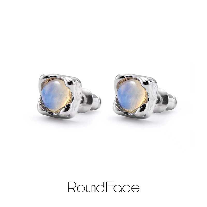 ROUNDFACE Dewy露水月光石纯银耳钉 原创设计复古银饰耳饰 默叙