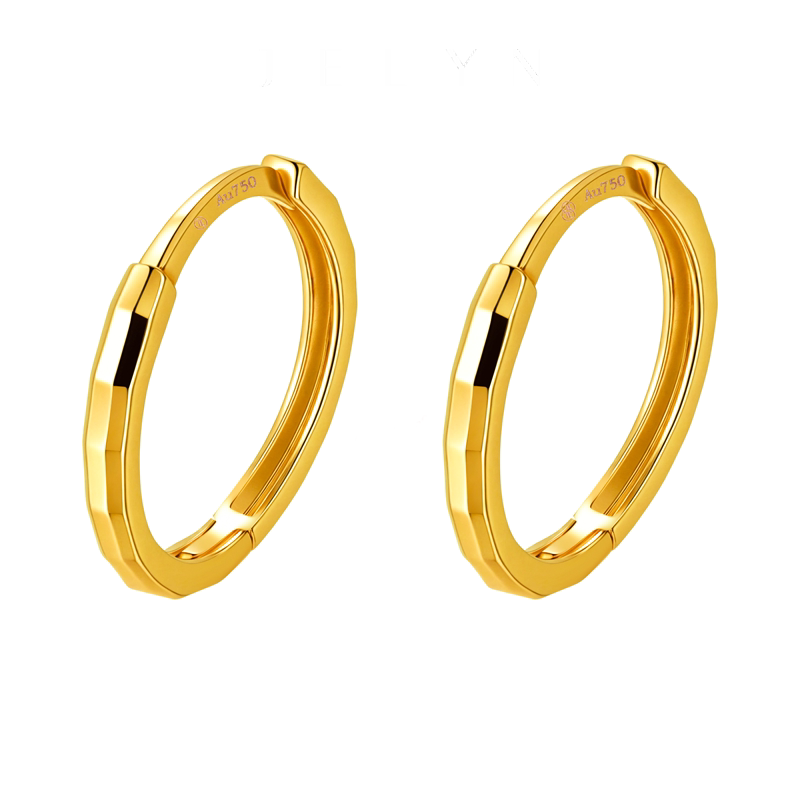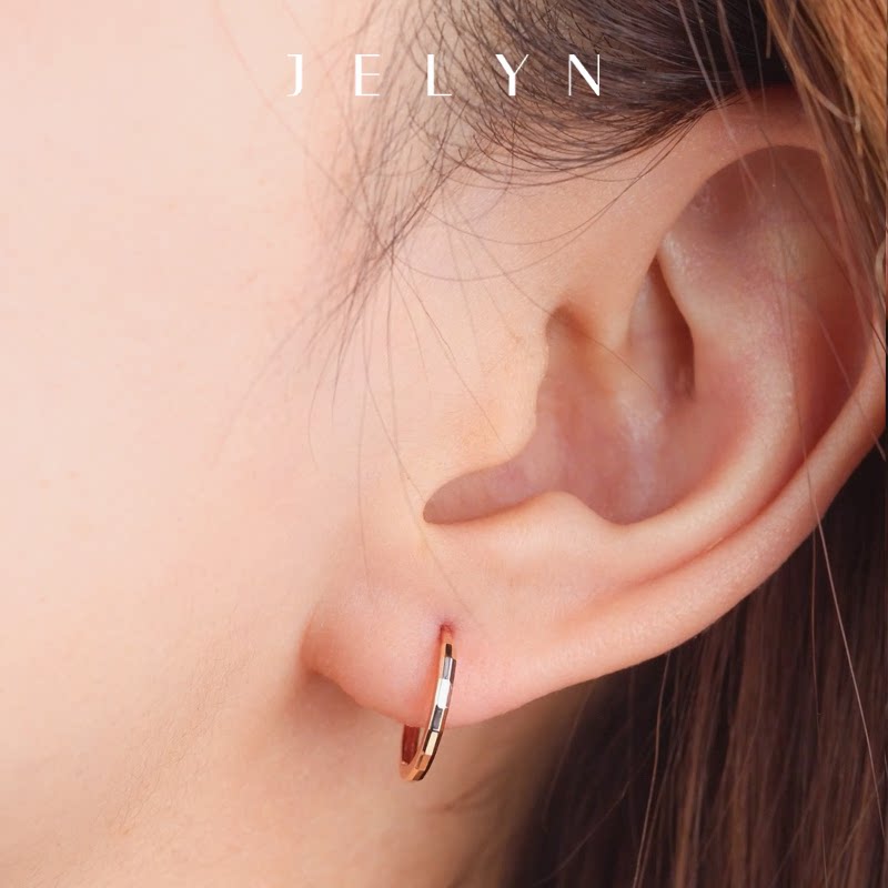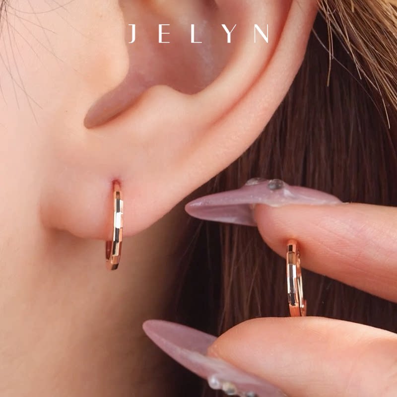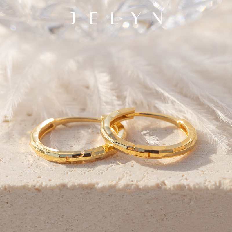 马赛克车花质感耳圈玥景18K玫瑰金彩金750新潮男女光面耳圆圈耳环