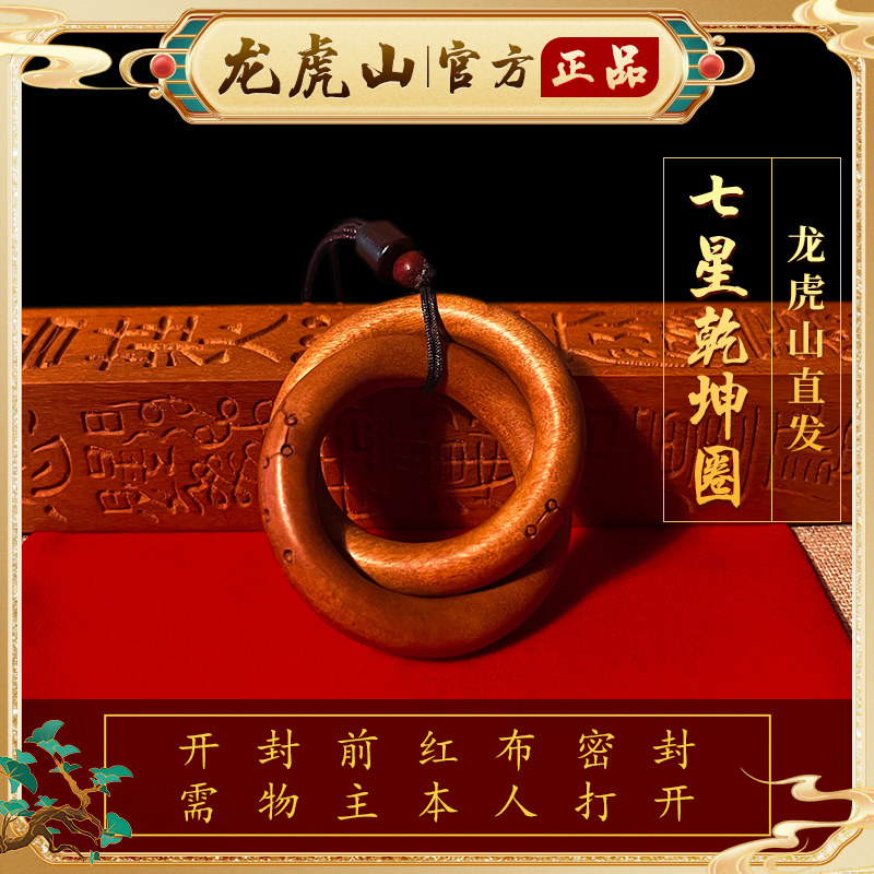 【龙虎山发货】天然雷击枣木七星乾坤圈道家真品阴阳镯环平安挂件