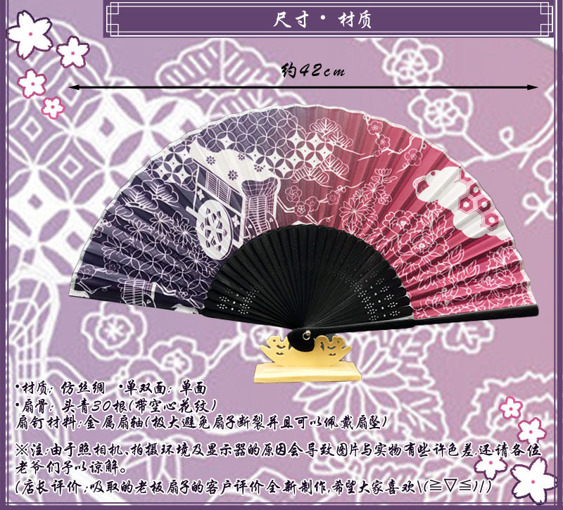 幽幽子扇子新款仿丝绸东方project西行寺幽幽子扇子cos套扇坠折扇
