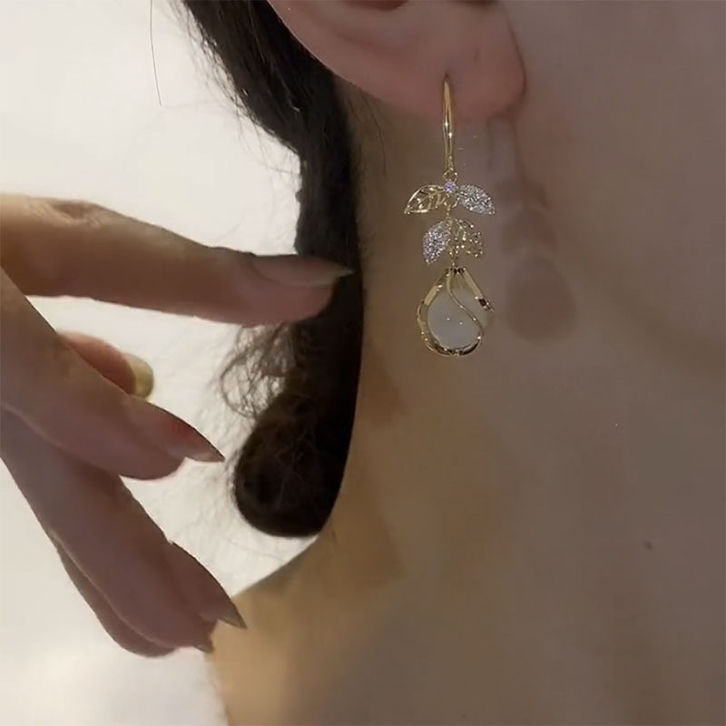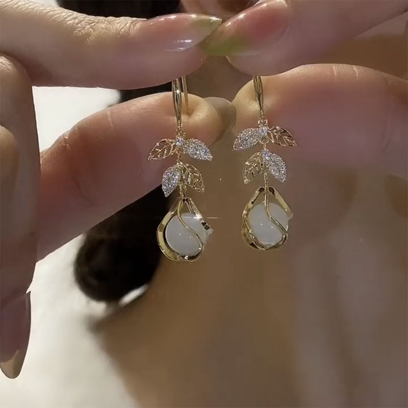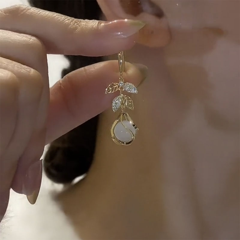猫眼石耳饰气质高级大气叶子耳坠精致耳环高级感耳钉女时尚防过敏