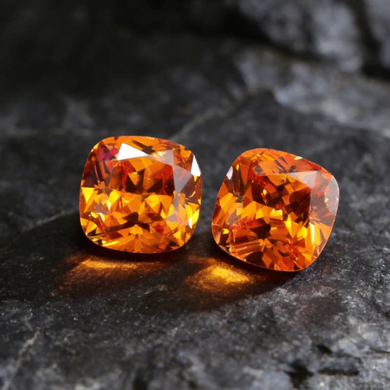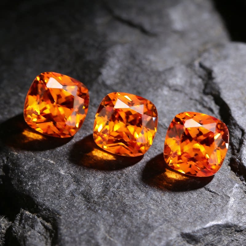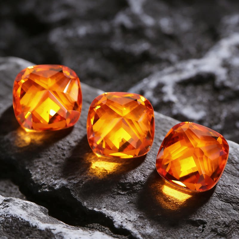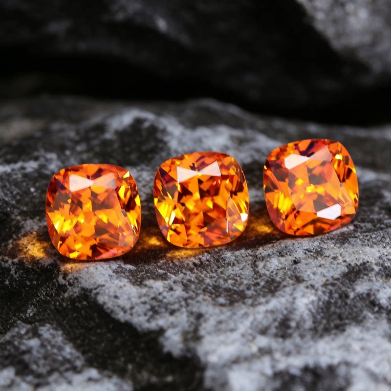 芬达石裸石火山橙色惊艳切割精工珠宝彩宝未镶嵌肥正方枕形克拉钻