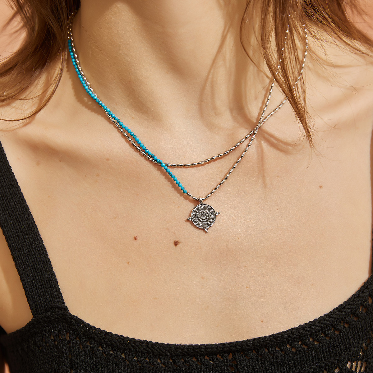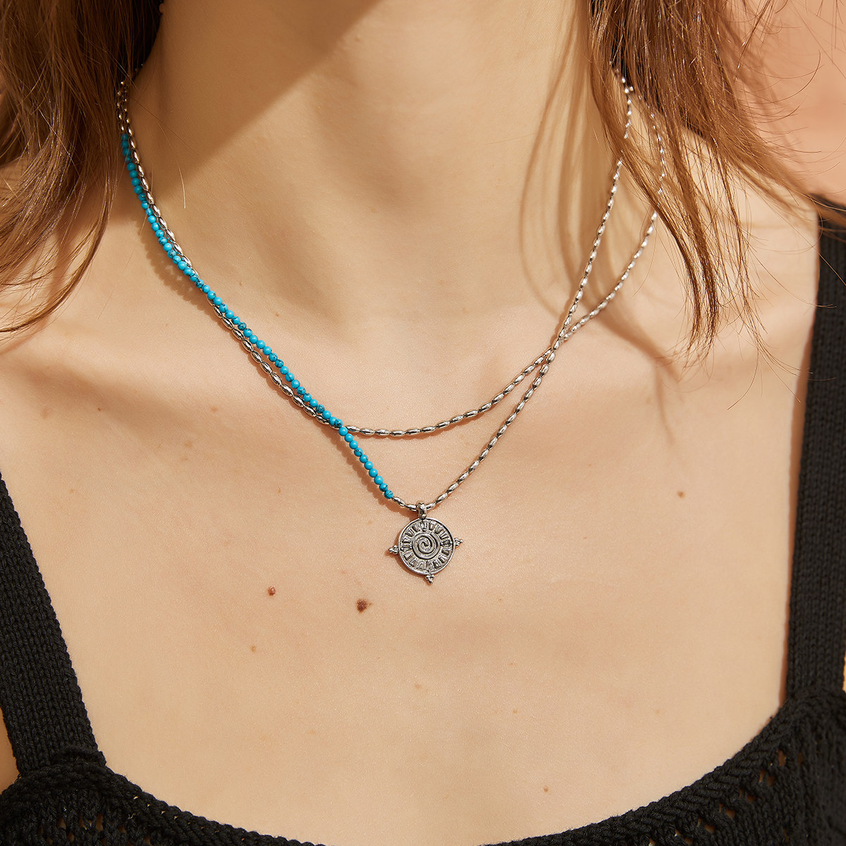 盘若言【言】一言 20K镀金简约米珠项链颈链叠戴项链 复古钱币新