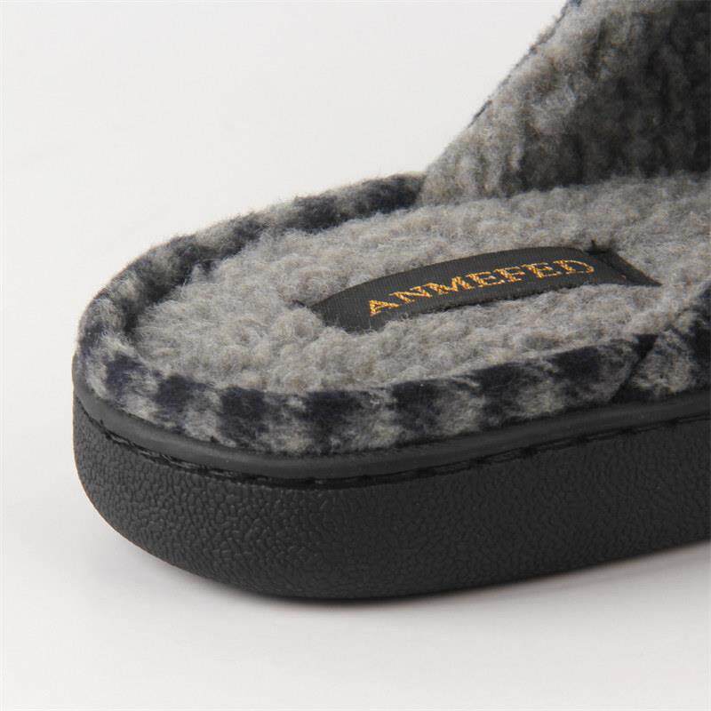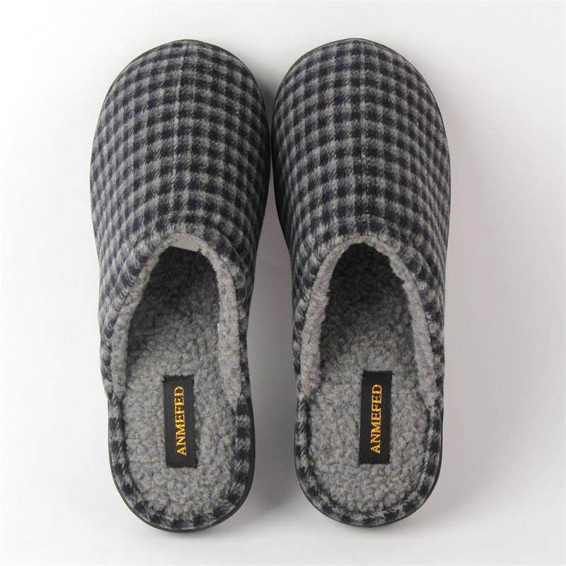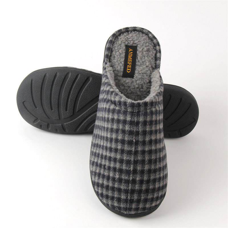 出口新品秋冬男士大码格子保暖加厚底防水防滑居家用耐磨棉拖鞋