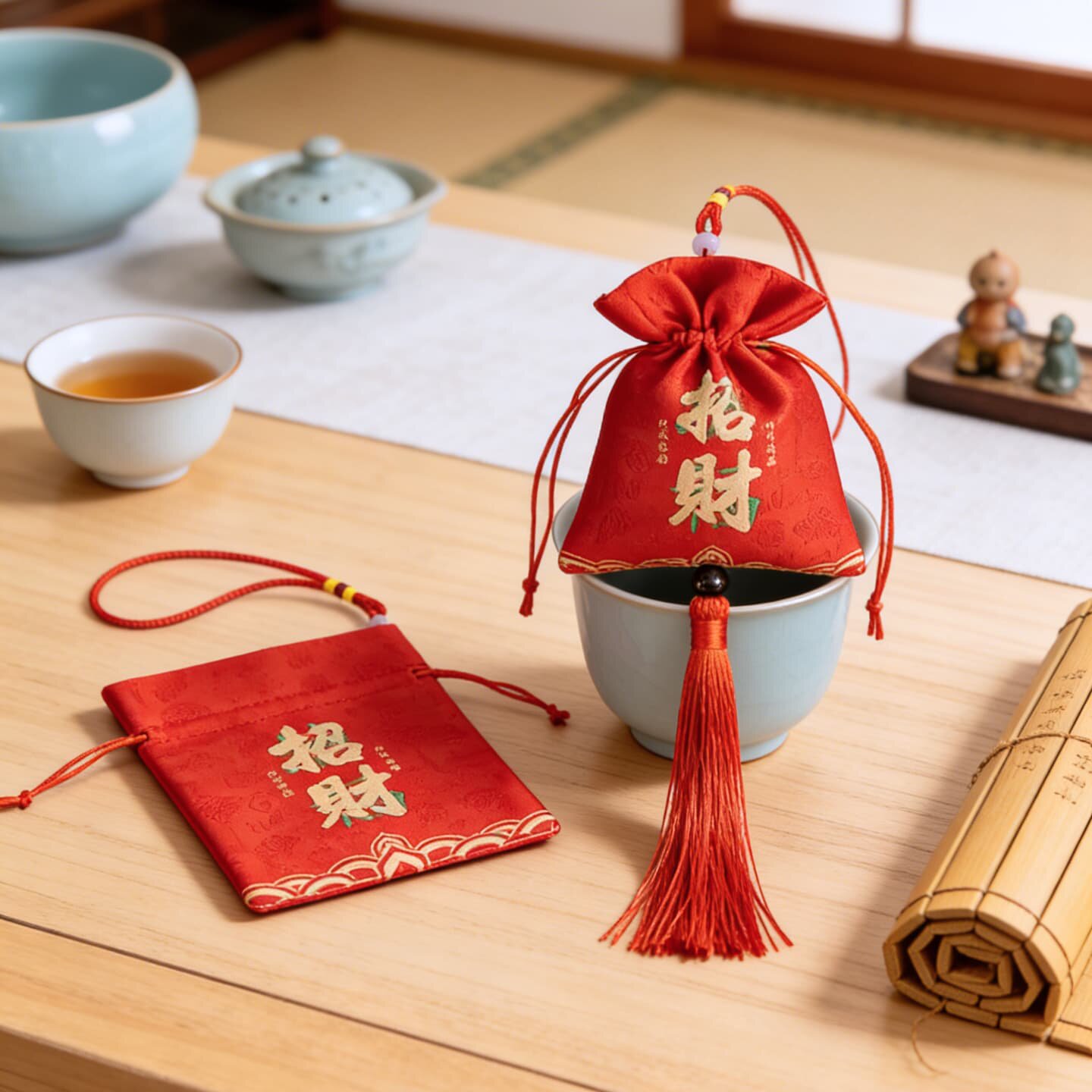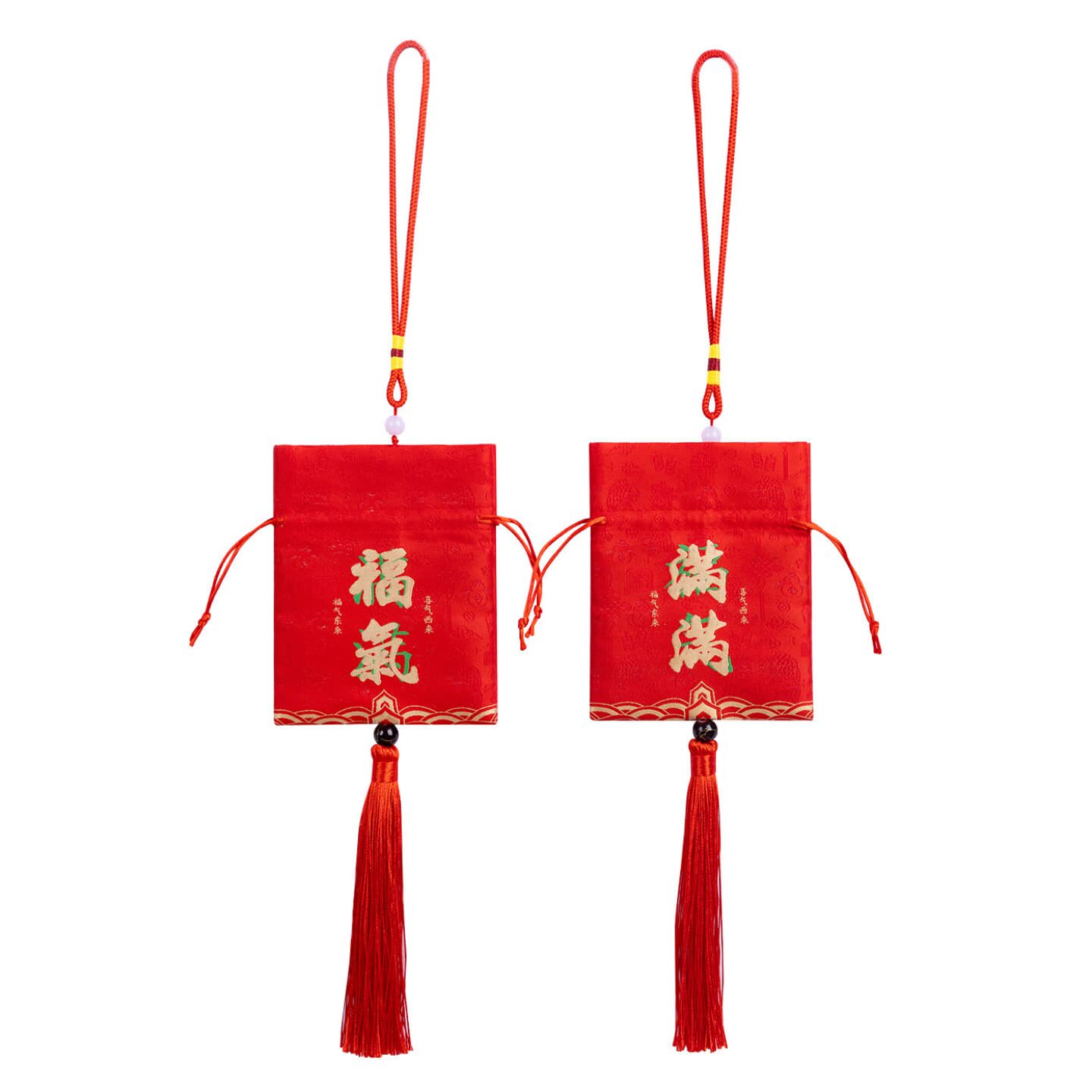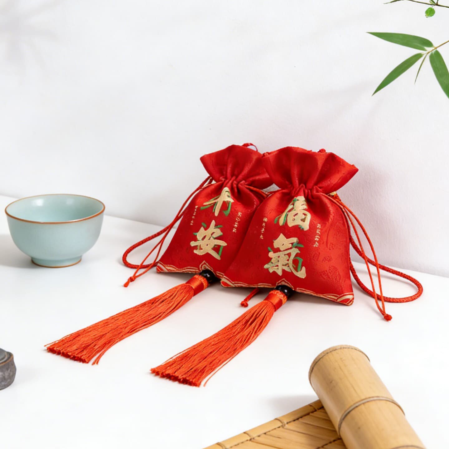 2026新年红色平安喜乐招财纳福首饰袋抽绳流苏喜庆吉祥双面图案