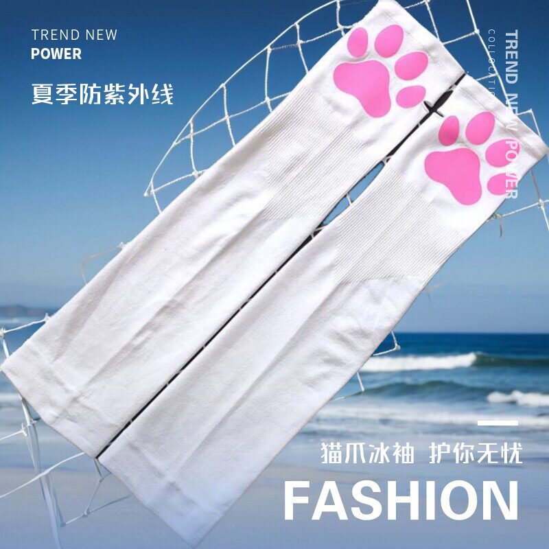 可爱猫爪冰袖防晒护臂手臂袖套冰丝夏季防紫外线开车防滑手套