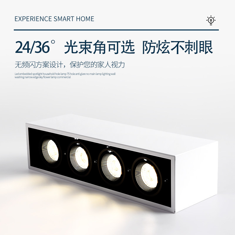 led明装射灯长方形三头四头斗胆灯高显色极简客厅无主灯吸顶筒灯