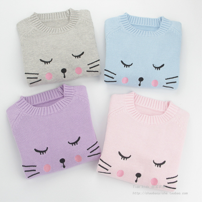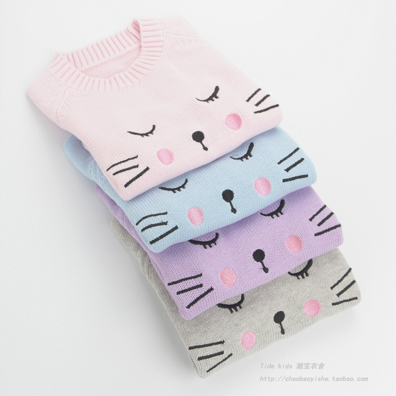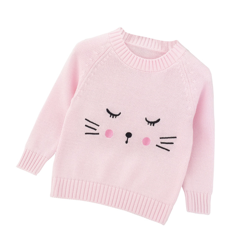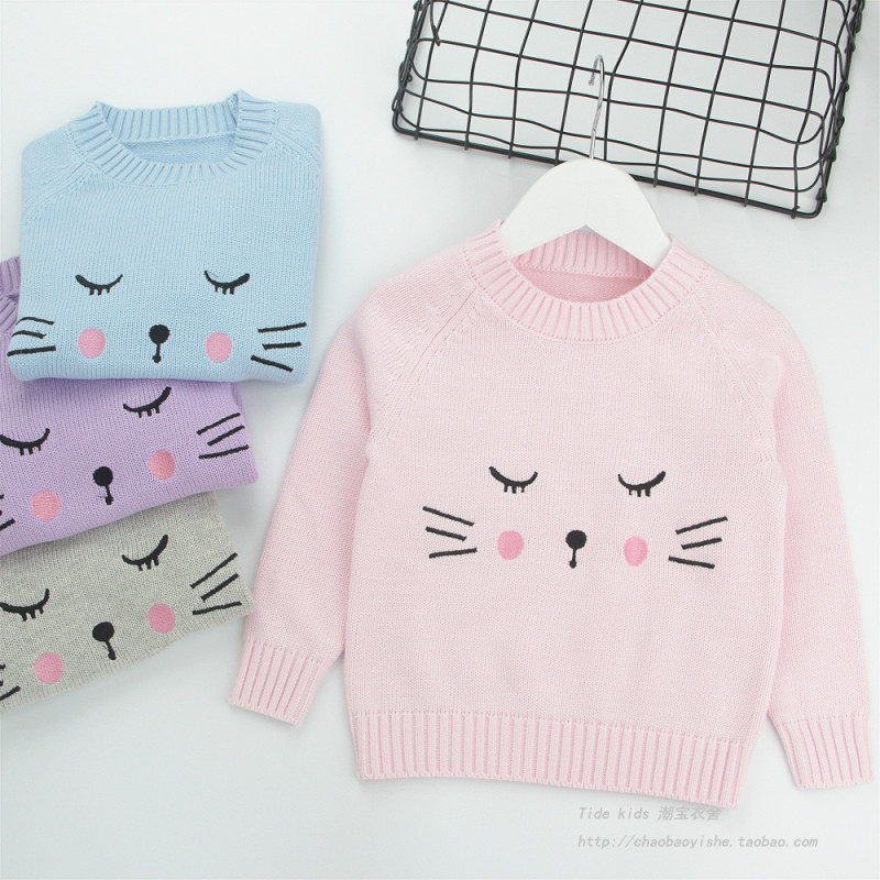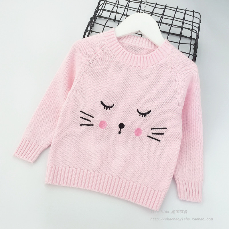 女童纯棉毛衣2024春季新款儿童装洋气休闲上衣宝宝套头圆领针织衫