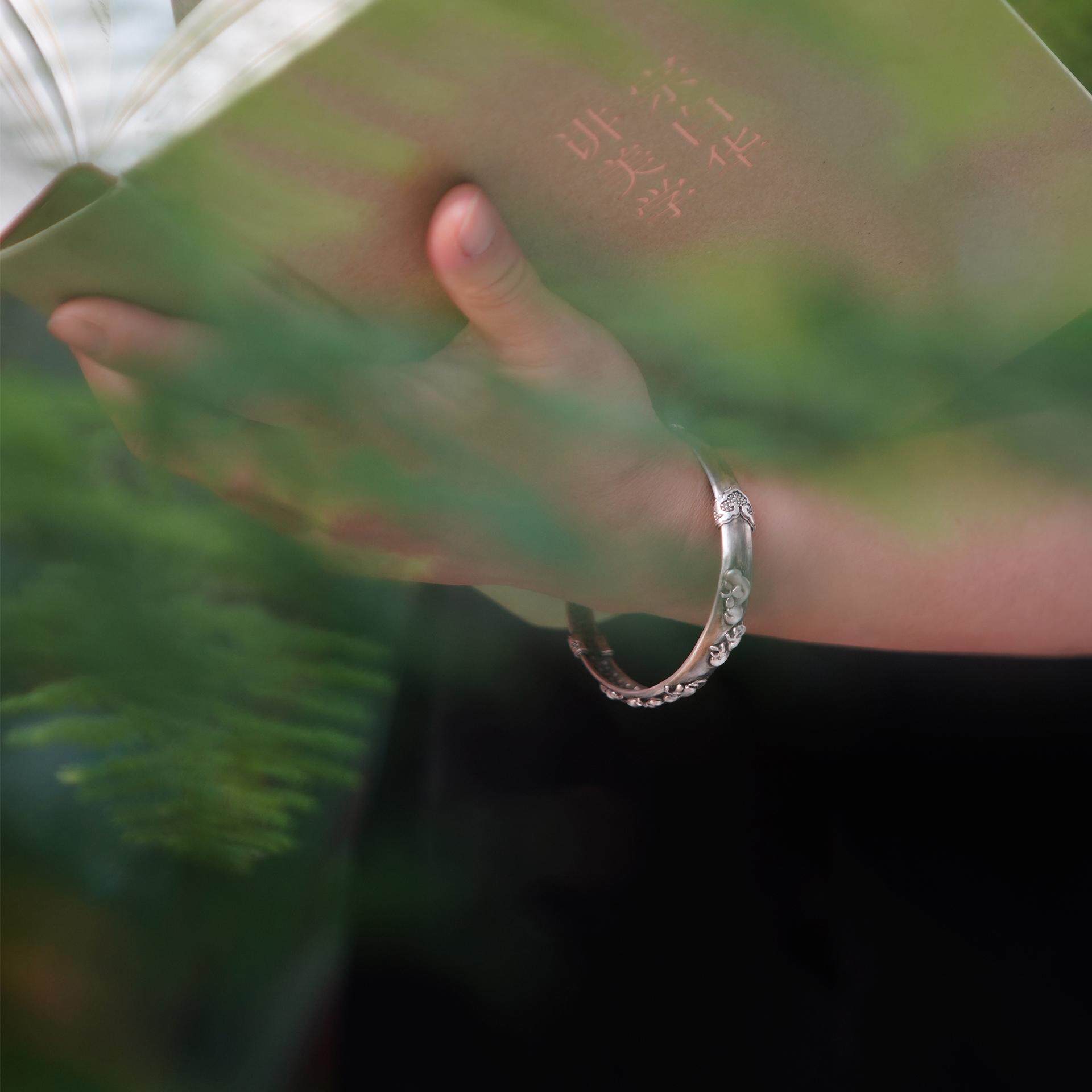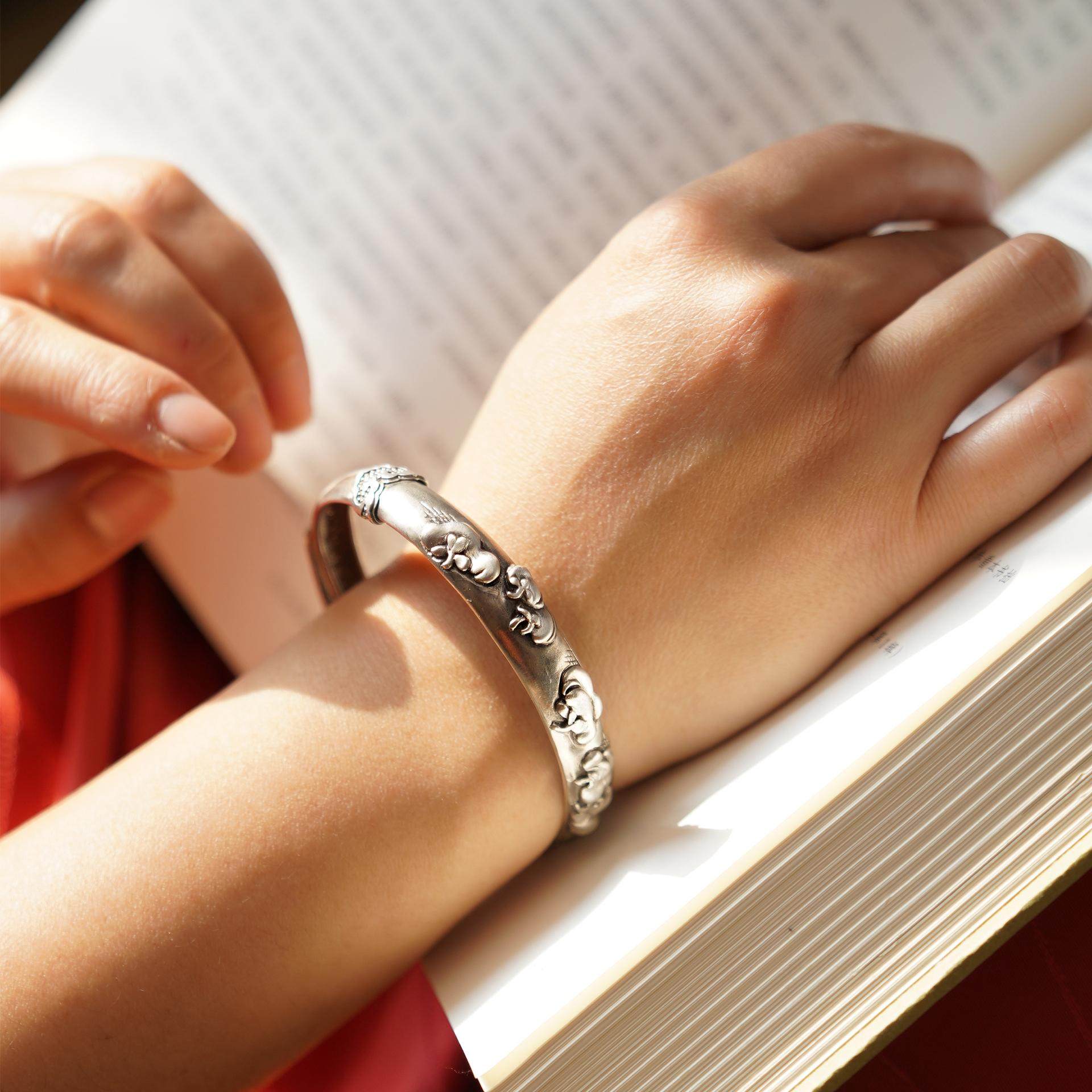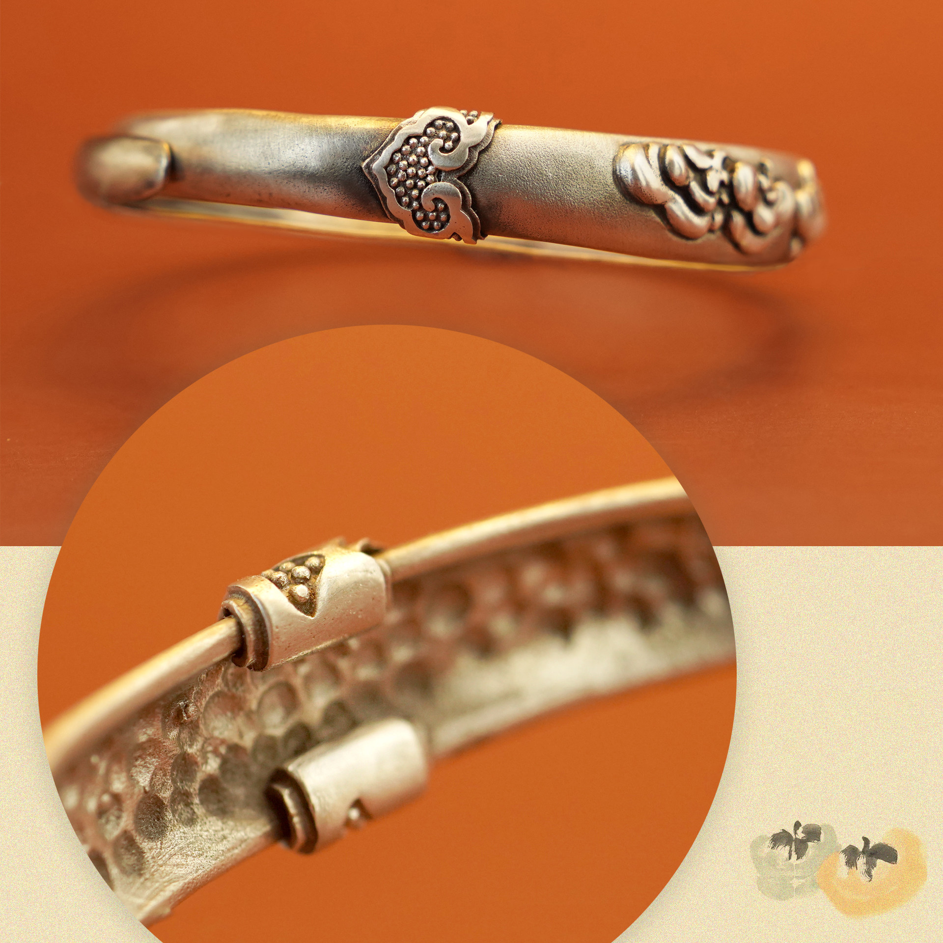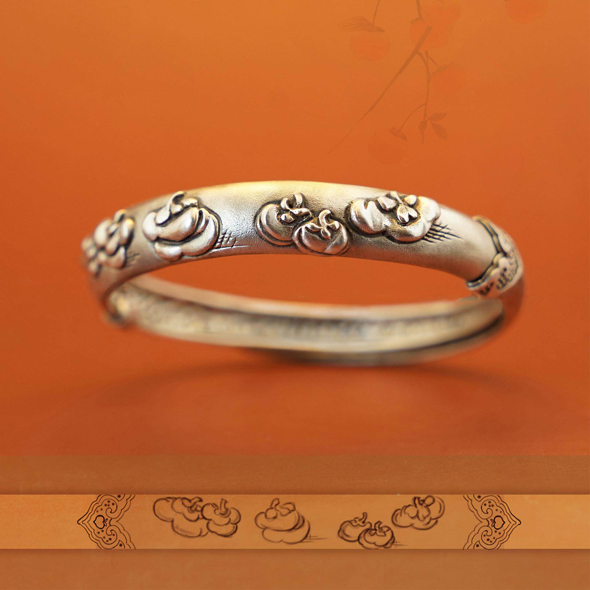 《六柿图》九九倾城原创/事事如意手工纯银手镯/复古新中式银镯子