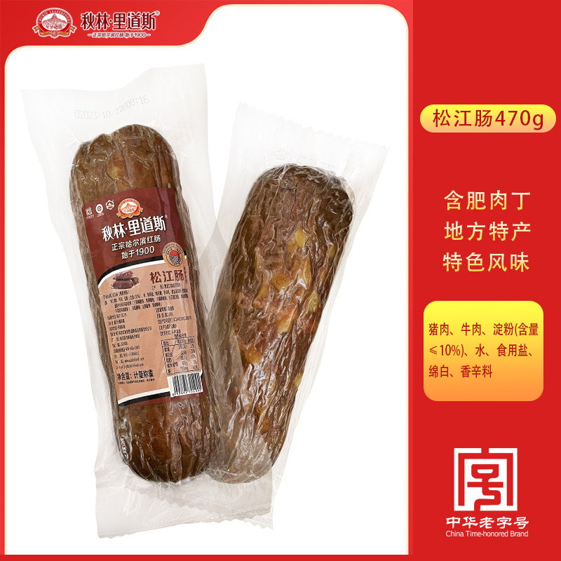 秋林里道斯松江肠470g 含肥肉丁肥肉丁蒜香货果木熏烤