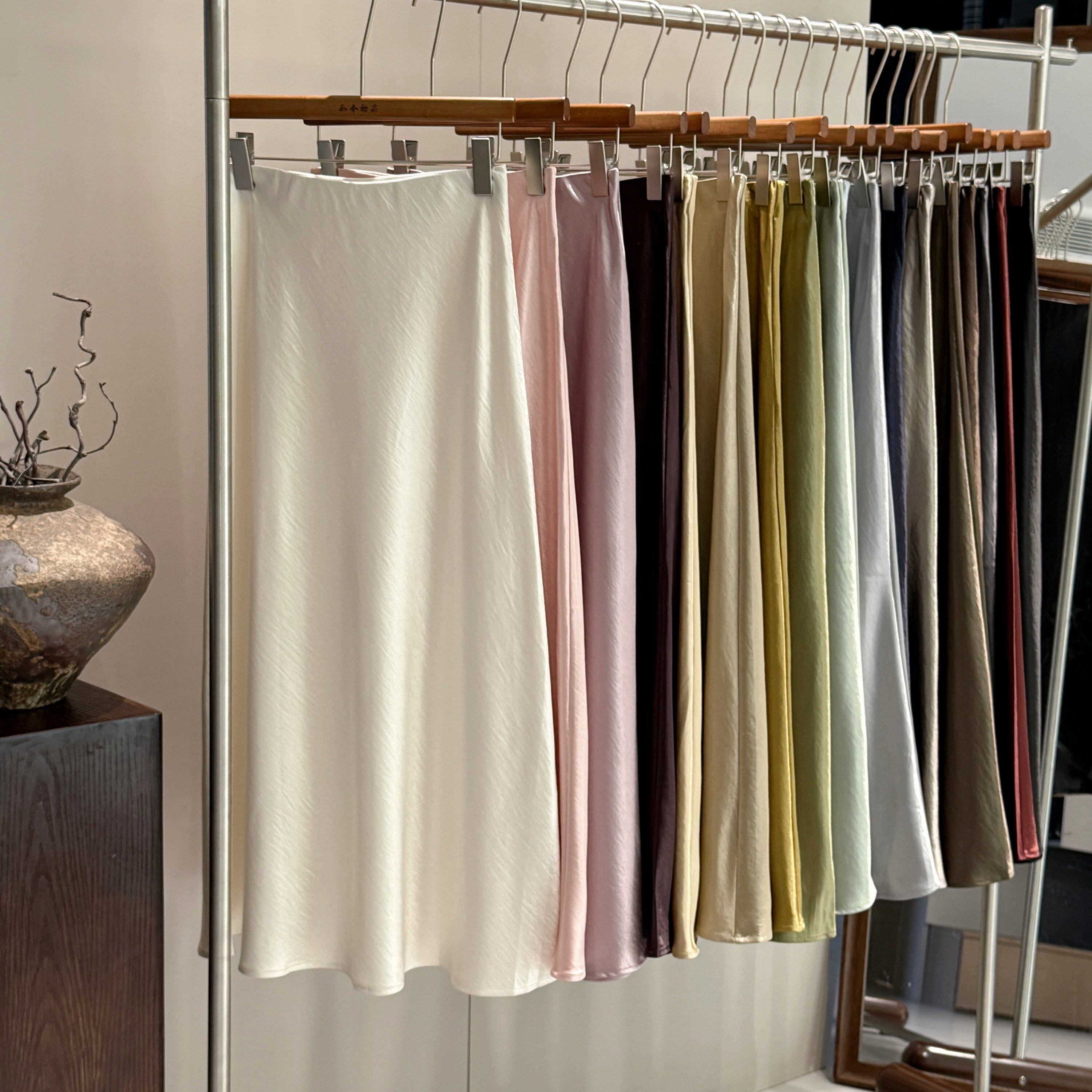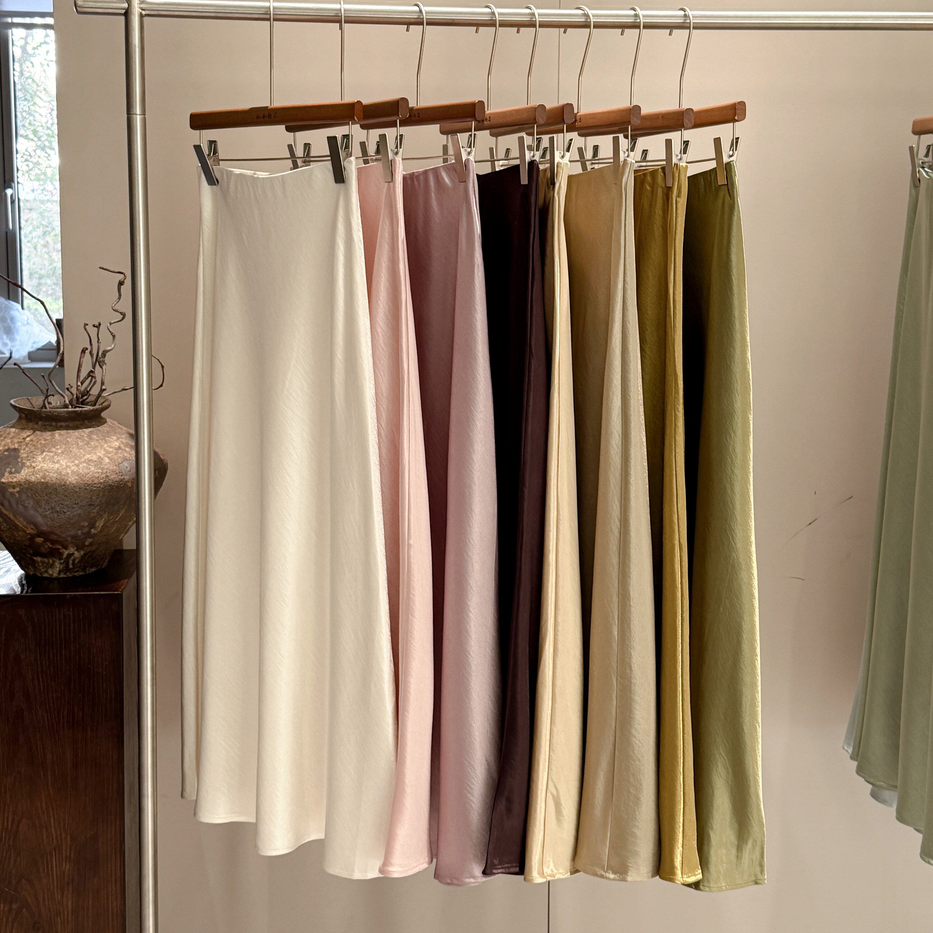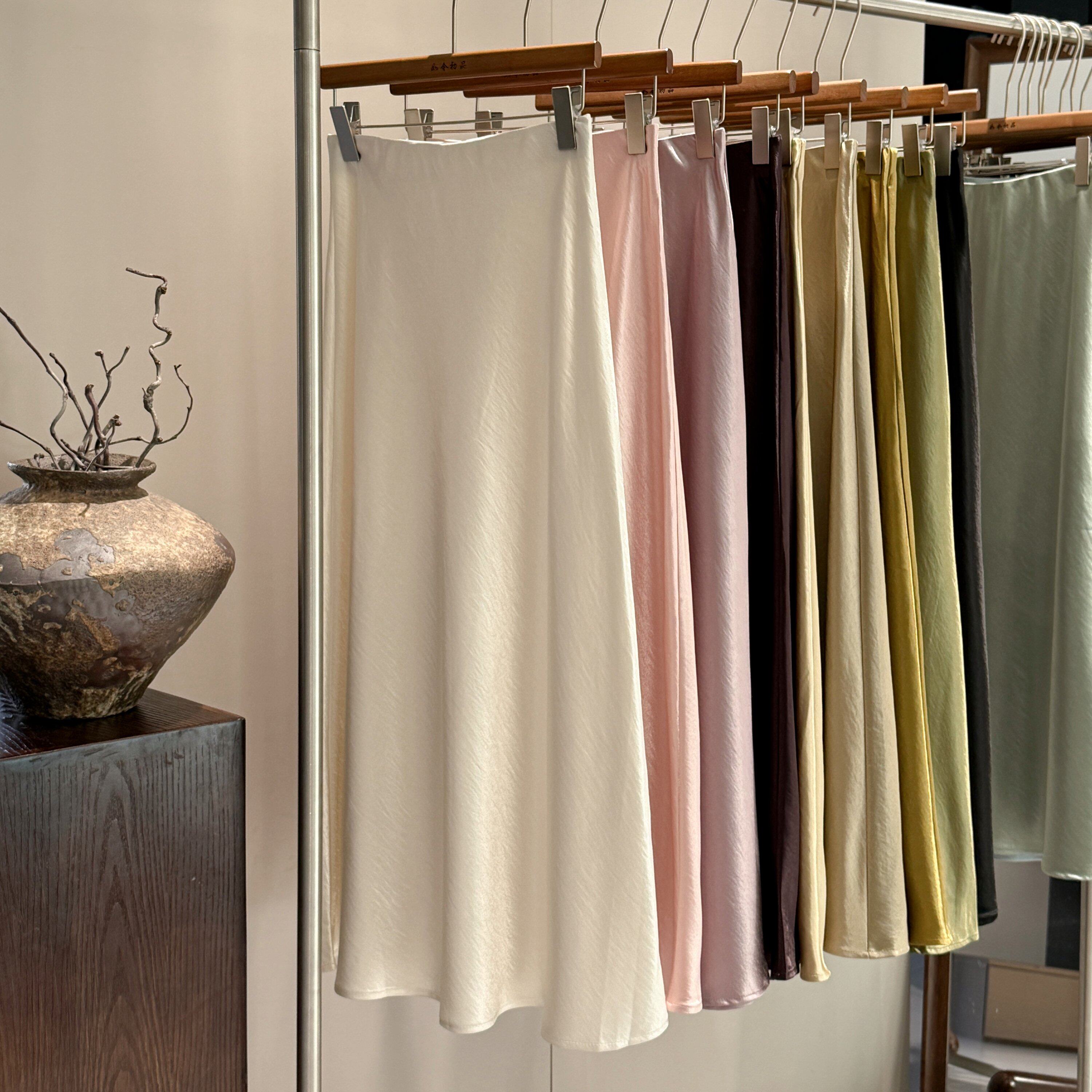 必入“流光裙”醋酸半身裙缎面丝质光泽a字包臀显瘦高级感春夏薄