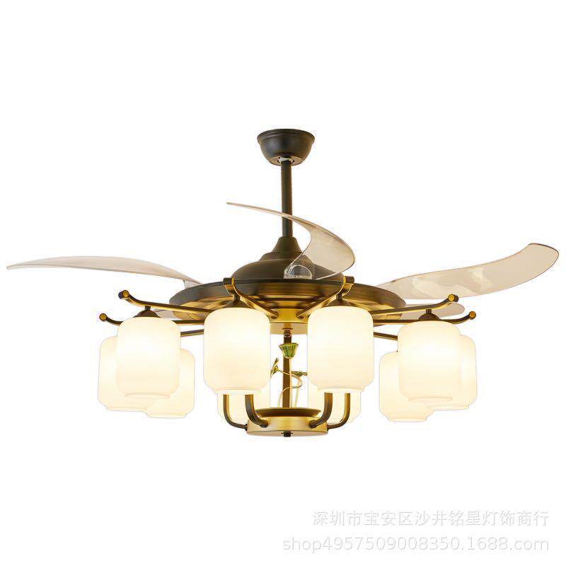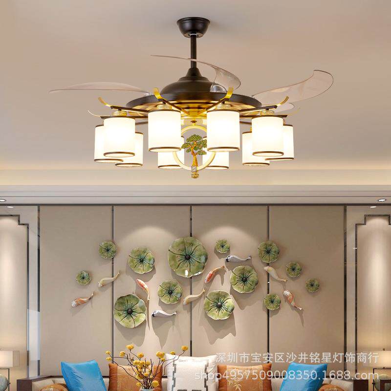 直销新款新中式风扇灯客厅吊扇灯中国风卧室书房家用餐厅风扇吊灯