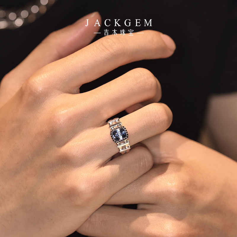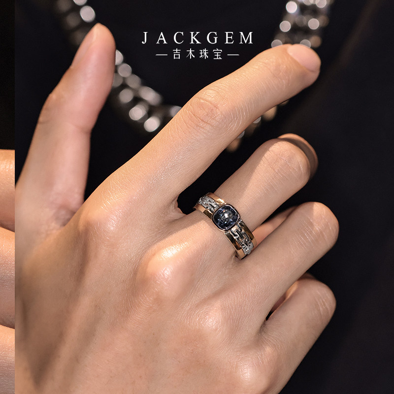 【原创伯爵】尖晶石戒指男士戒指宝石戒指灰尖晶戒指男戒金珠宝D7