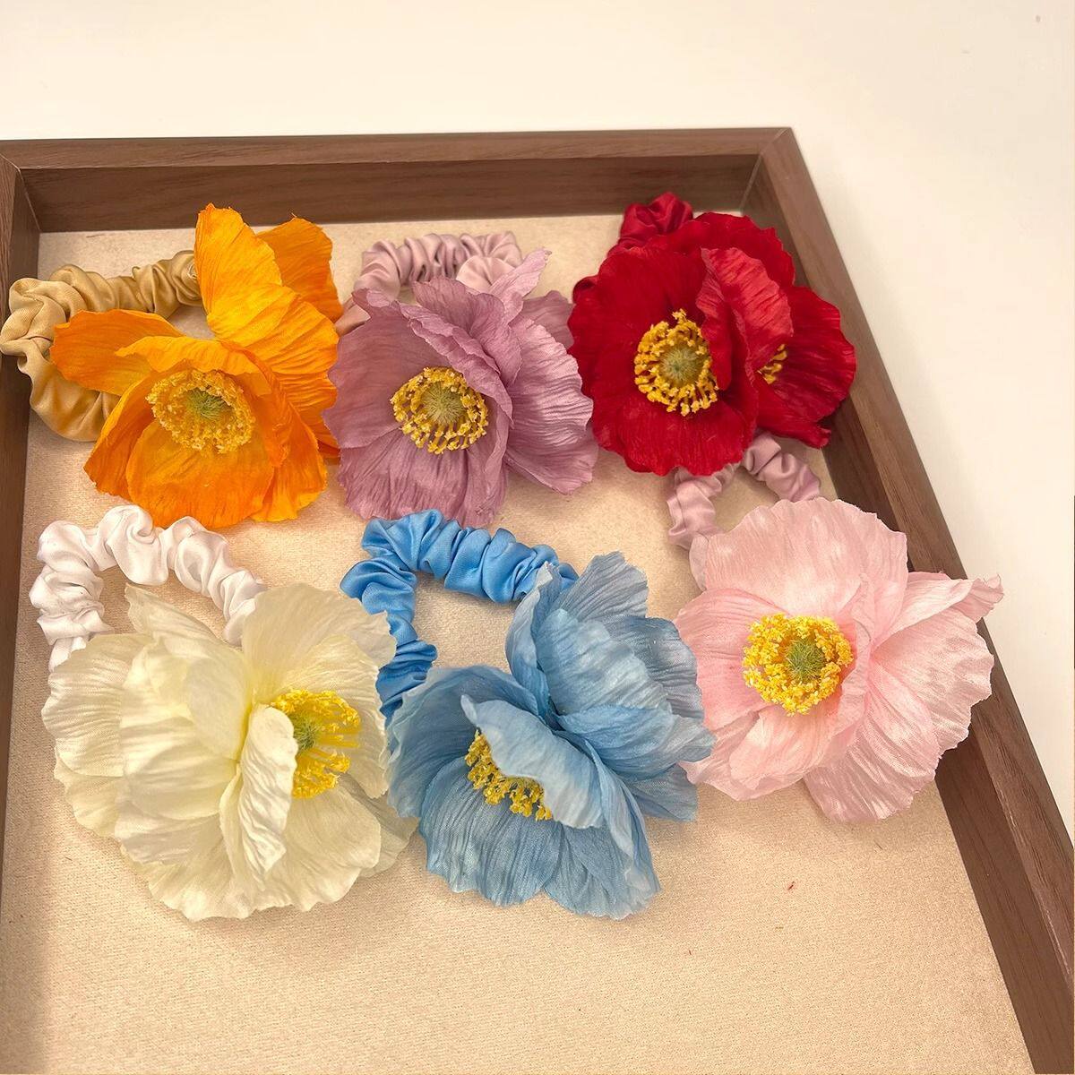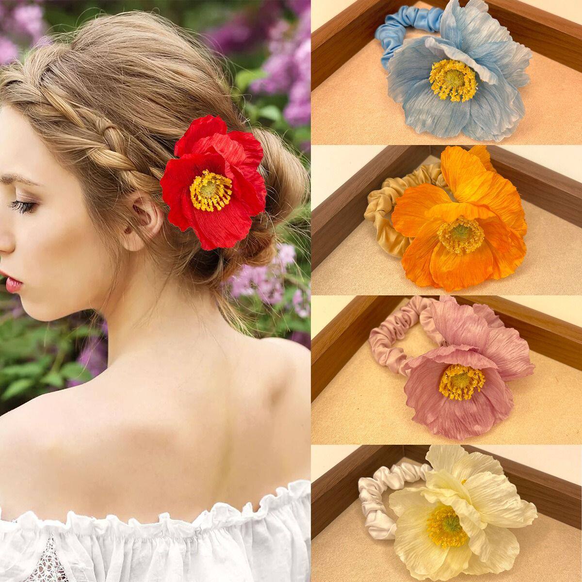 氛围度假超仙头寒冰气质拍照日落大号新款虞美人侧边饰品蓝色清冷