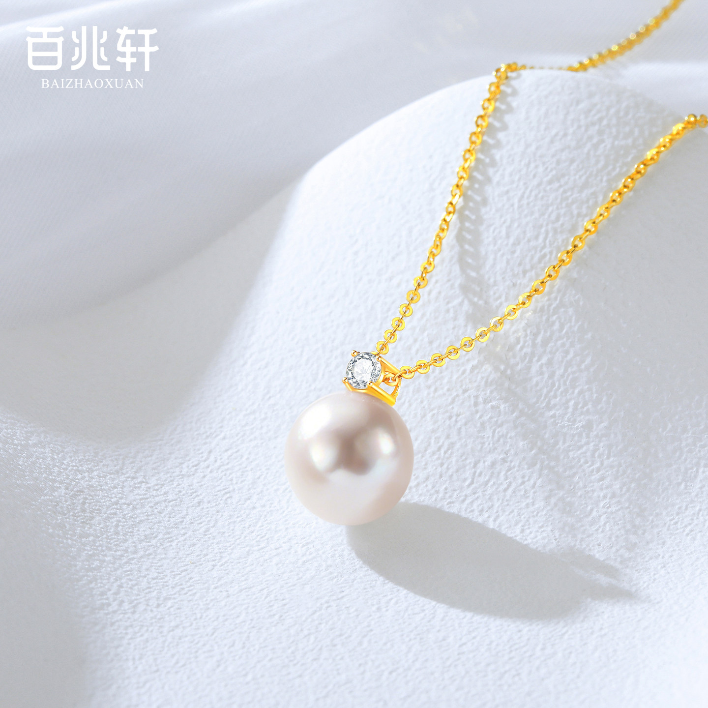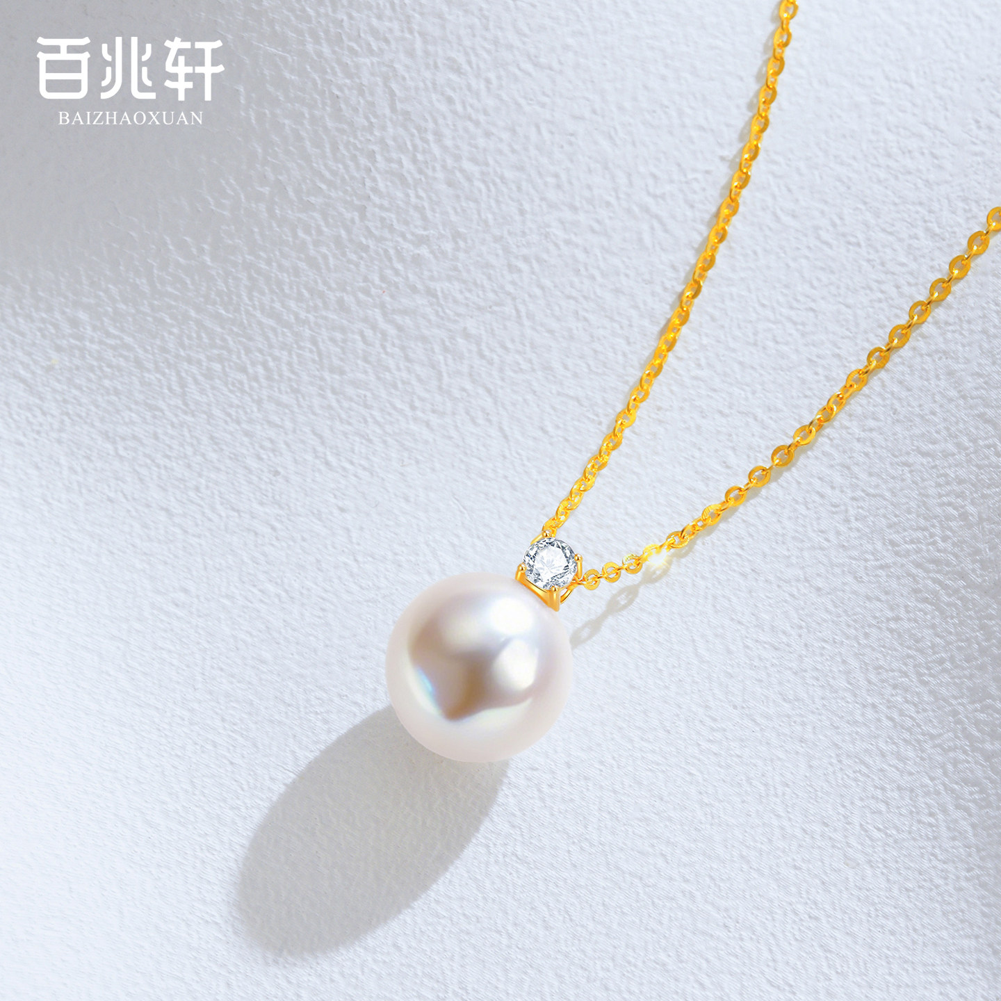 百兆轩akoya海水珍珠项链戴妃款正品18K金珍珠吊坠颈链送女友礼物