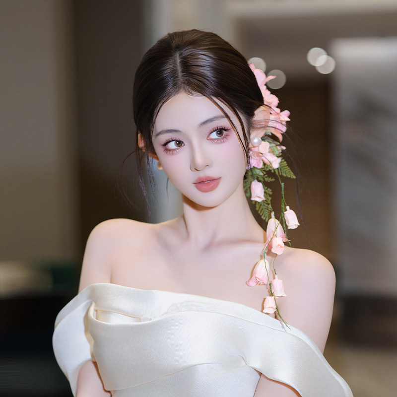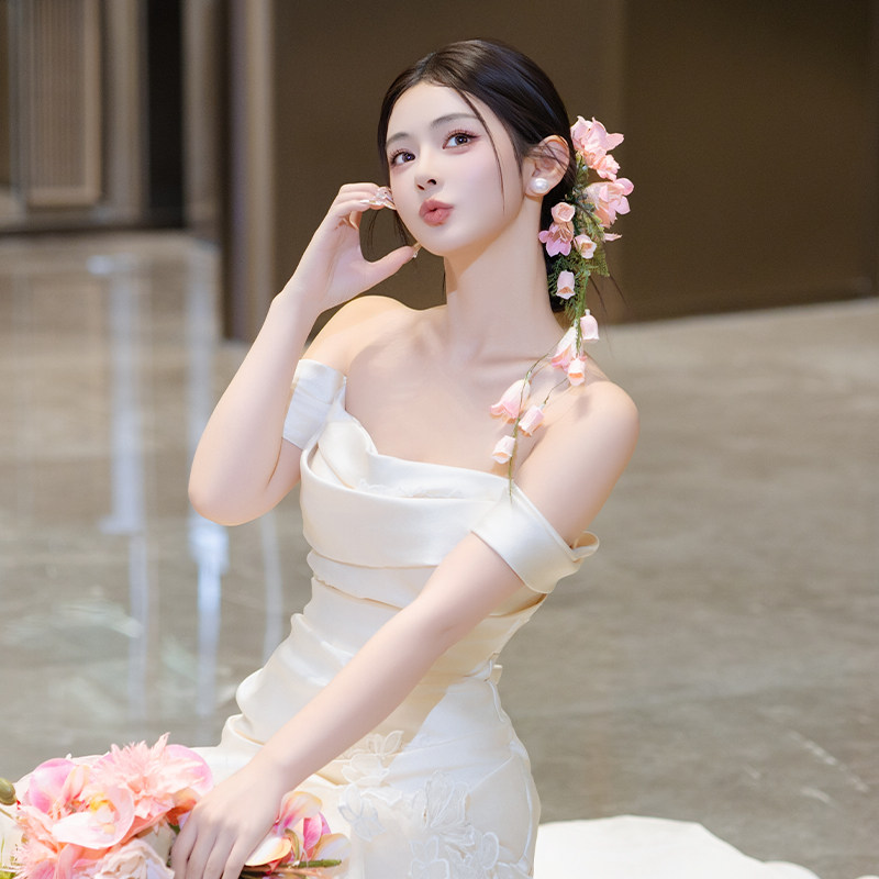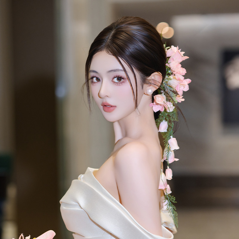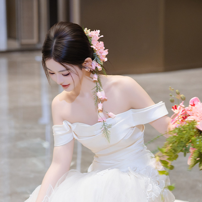 森系手工浪漫粉色新娘仿真花朵发饰超仙甜美婚纱礼服配饰减龄发饰