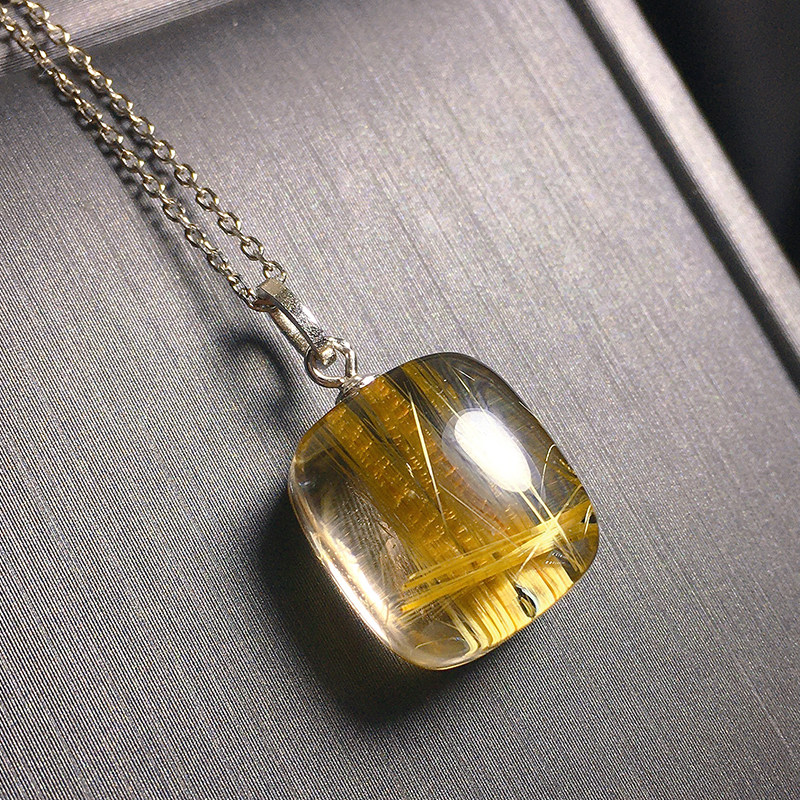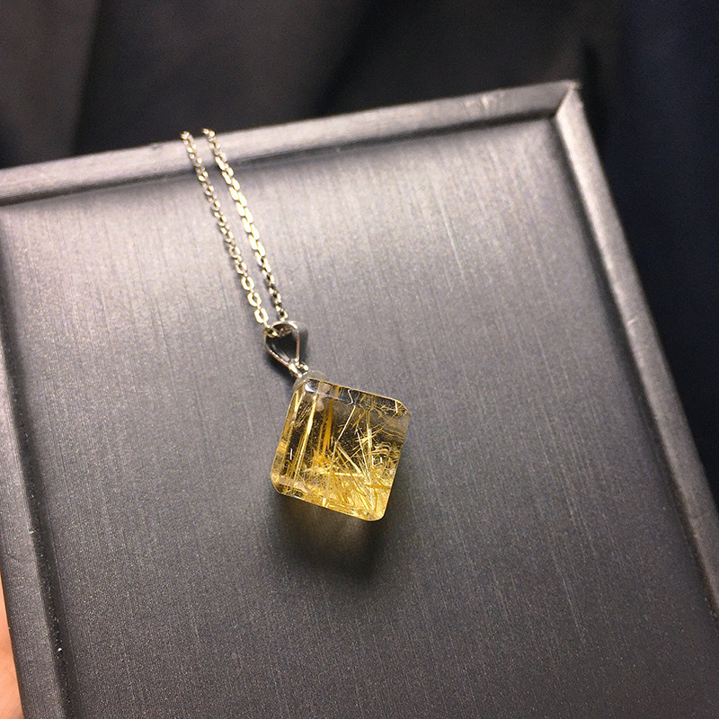 天然金发晶吊坠 方糖挂坠顺发板钛晶女生情侣生日礼物黄水晶猫眼