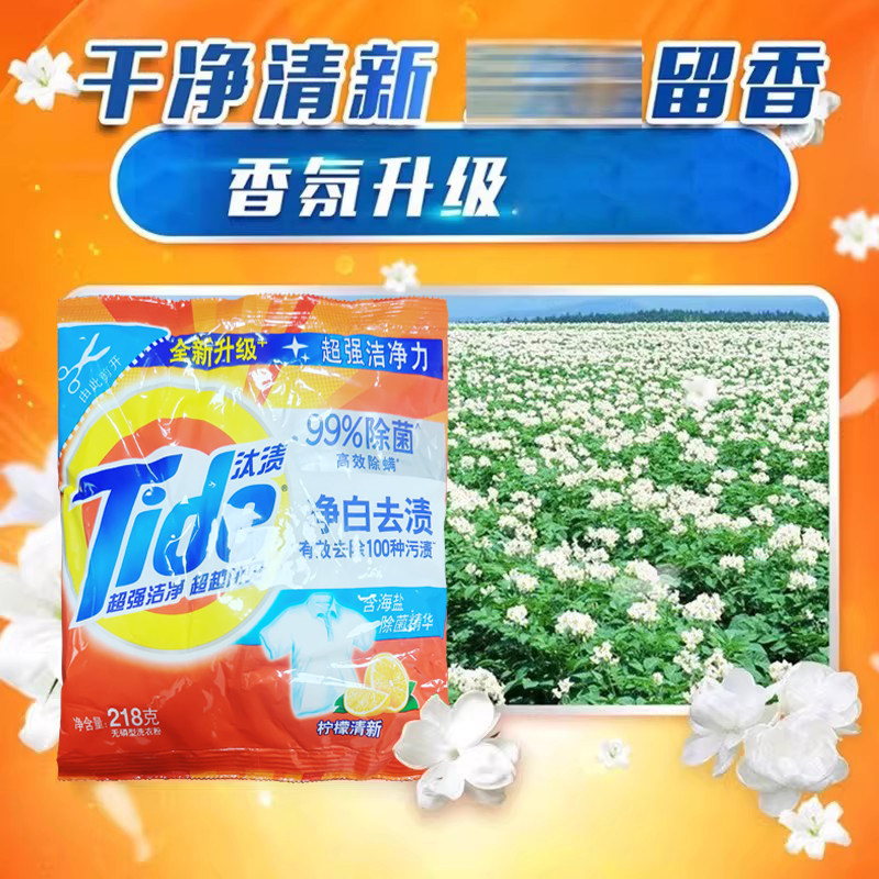 汰渍洗衣粉218g净白去渍小袋家用小包装实惠装净白去渍正品