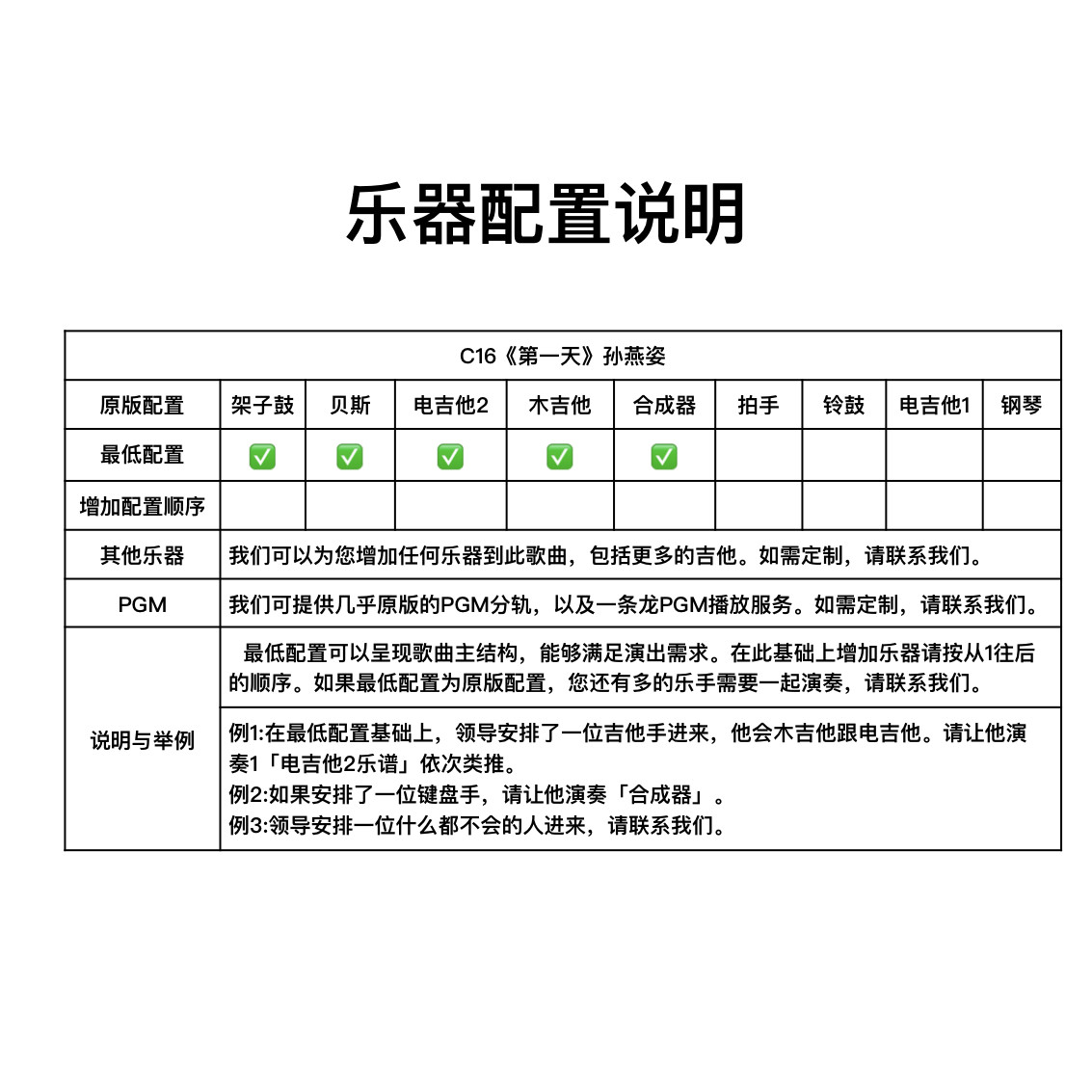 C16乐队总谱-《第一天》-孙燕姿 吉他谱鼓谱贝斯谱键盘谱定制