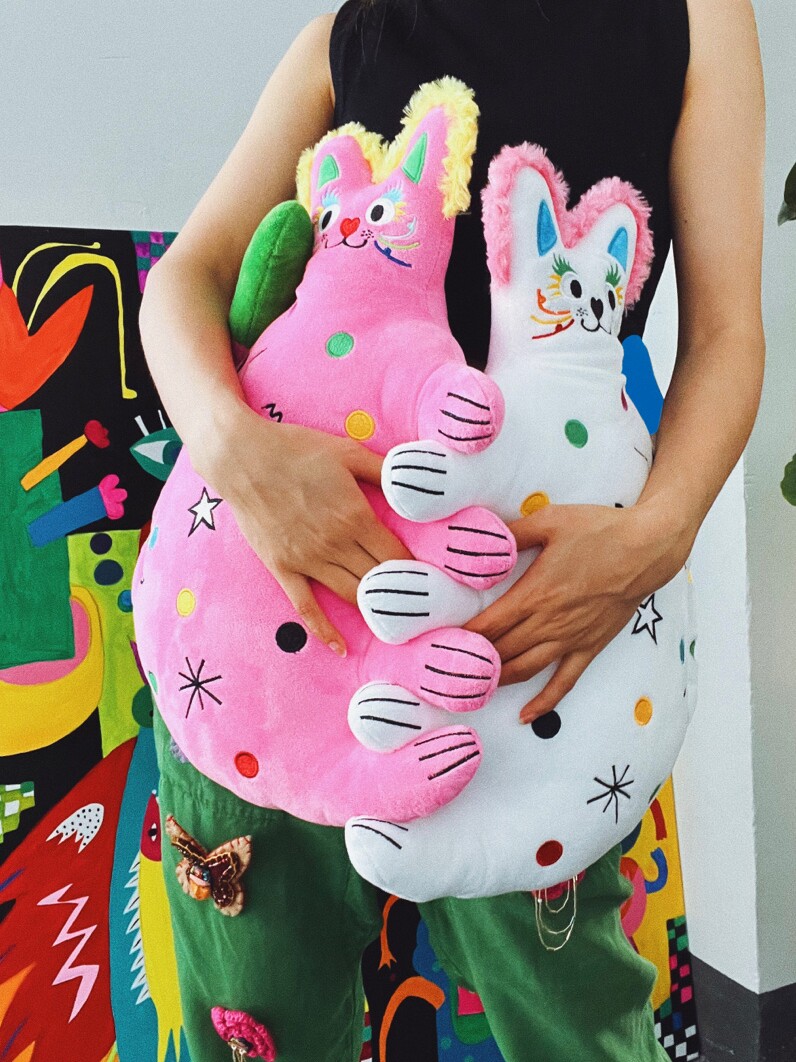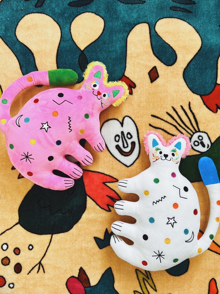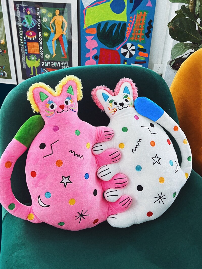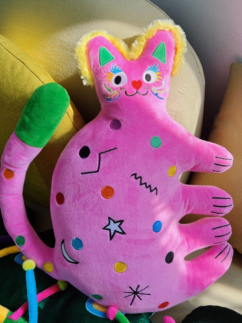 有蒂棵棵甜心猫抱枕可爱毛绒玩偶公仔男新婚礼物情侣靠垫多巴胺色