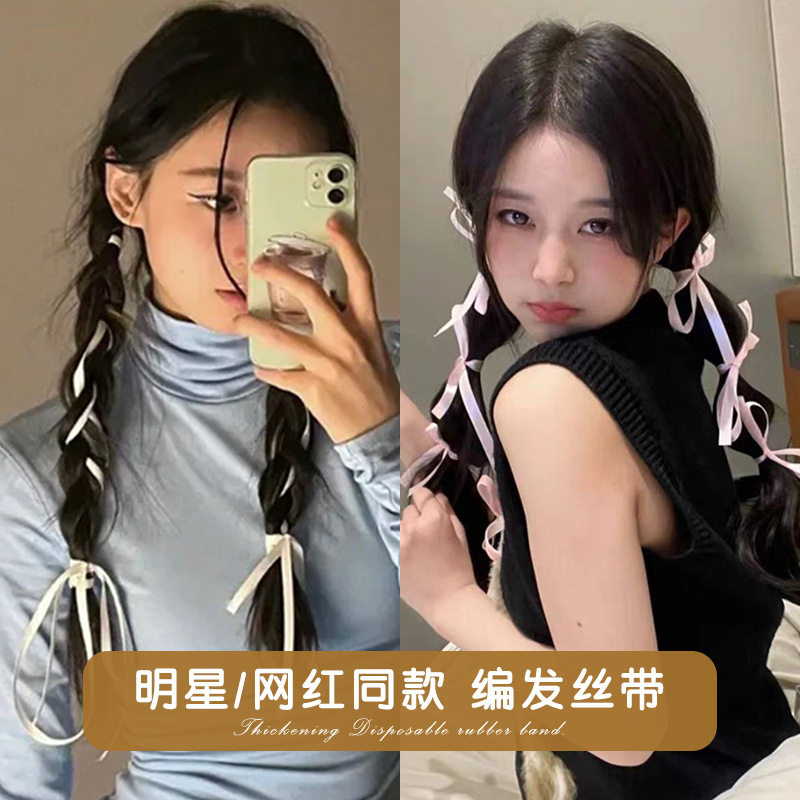 双马尾编发丝带网红蝴蝶结飘带发饰发绳绑头发带丝巾头饰头绳