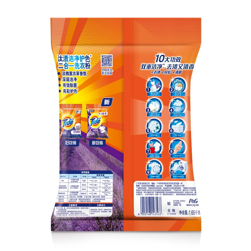 汰渍薰衣草洗衣粉1.65kg3kg洁净熏香去渍去污机洗手洗家庭实惠