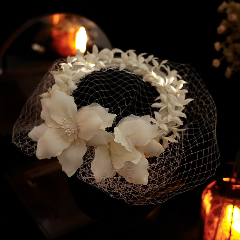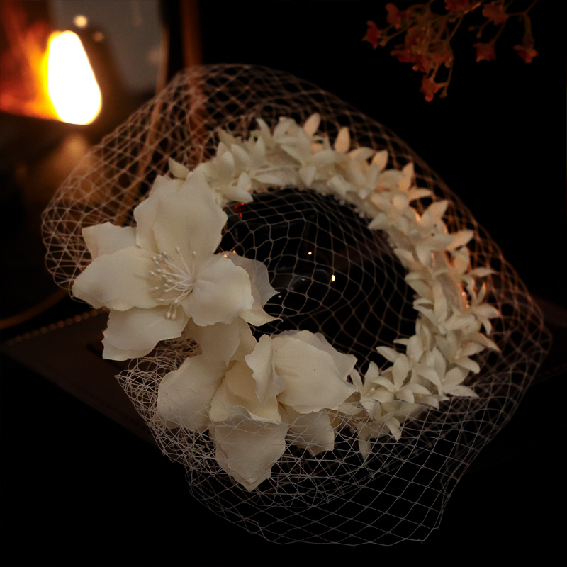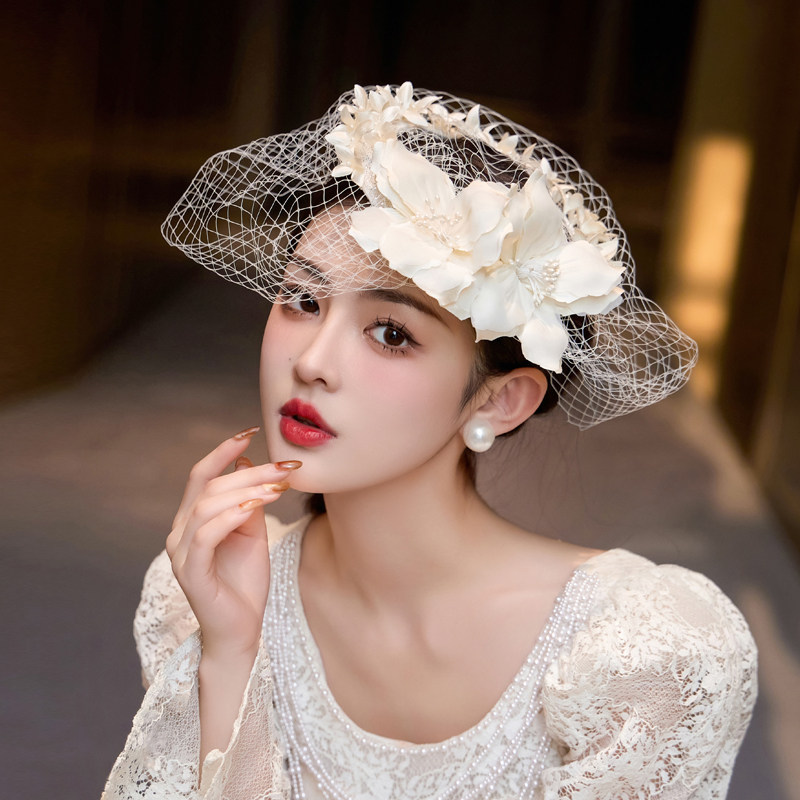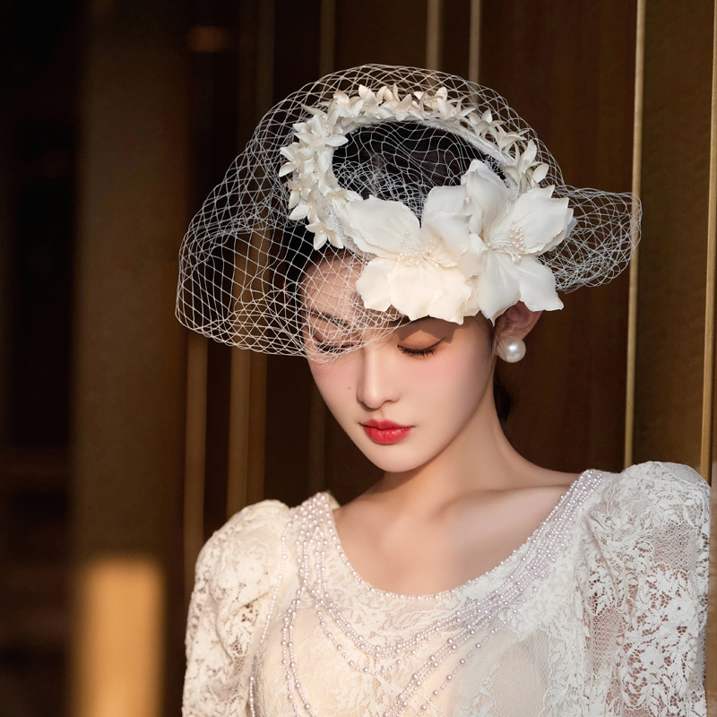 新娘头饰白色礼帽网纱遮面复古法式唯美气质优雅礼服结婚发饰帽子