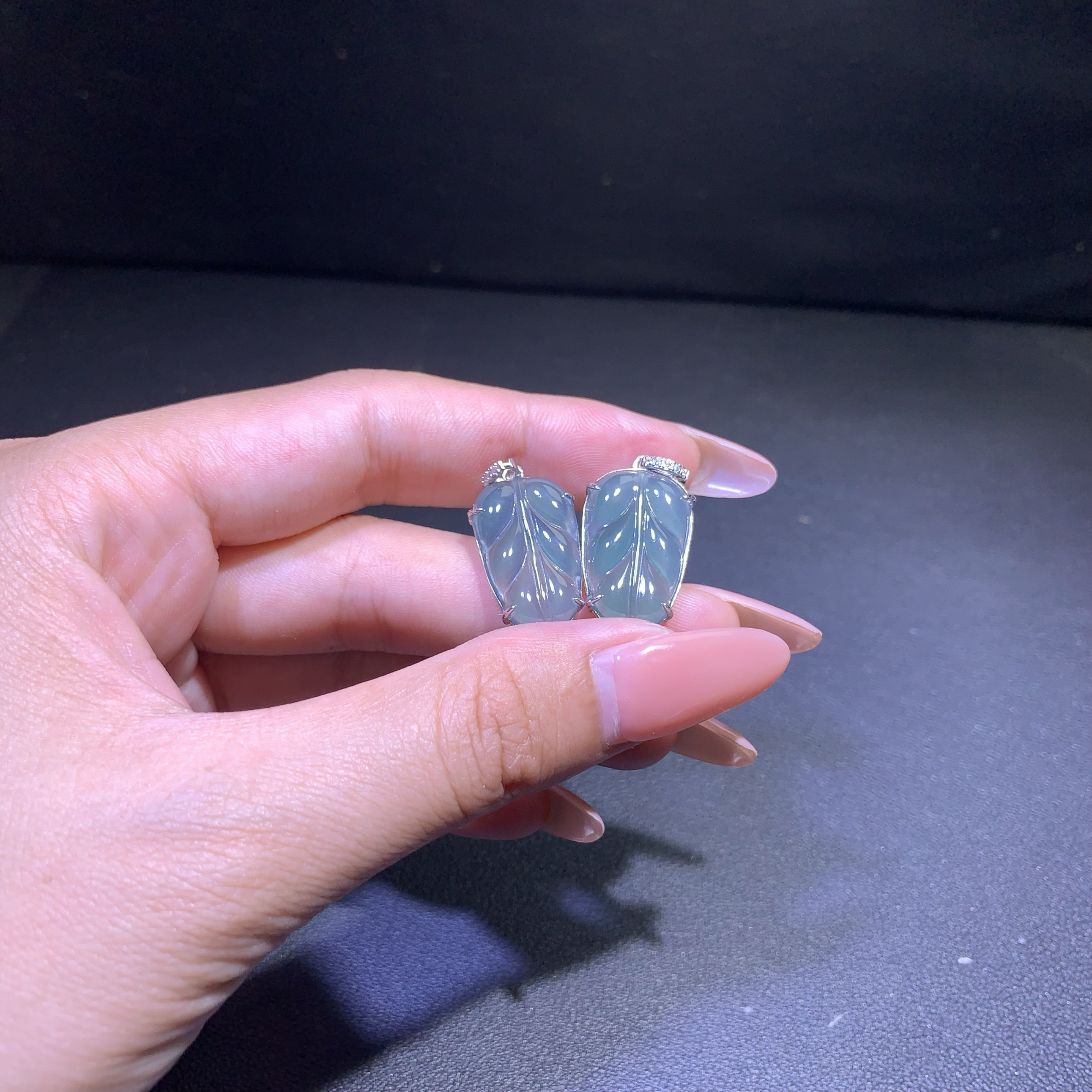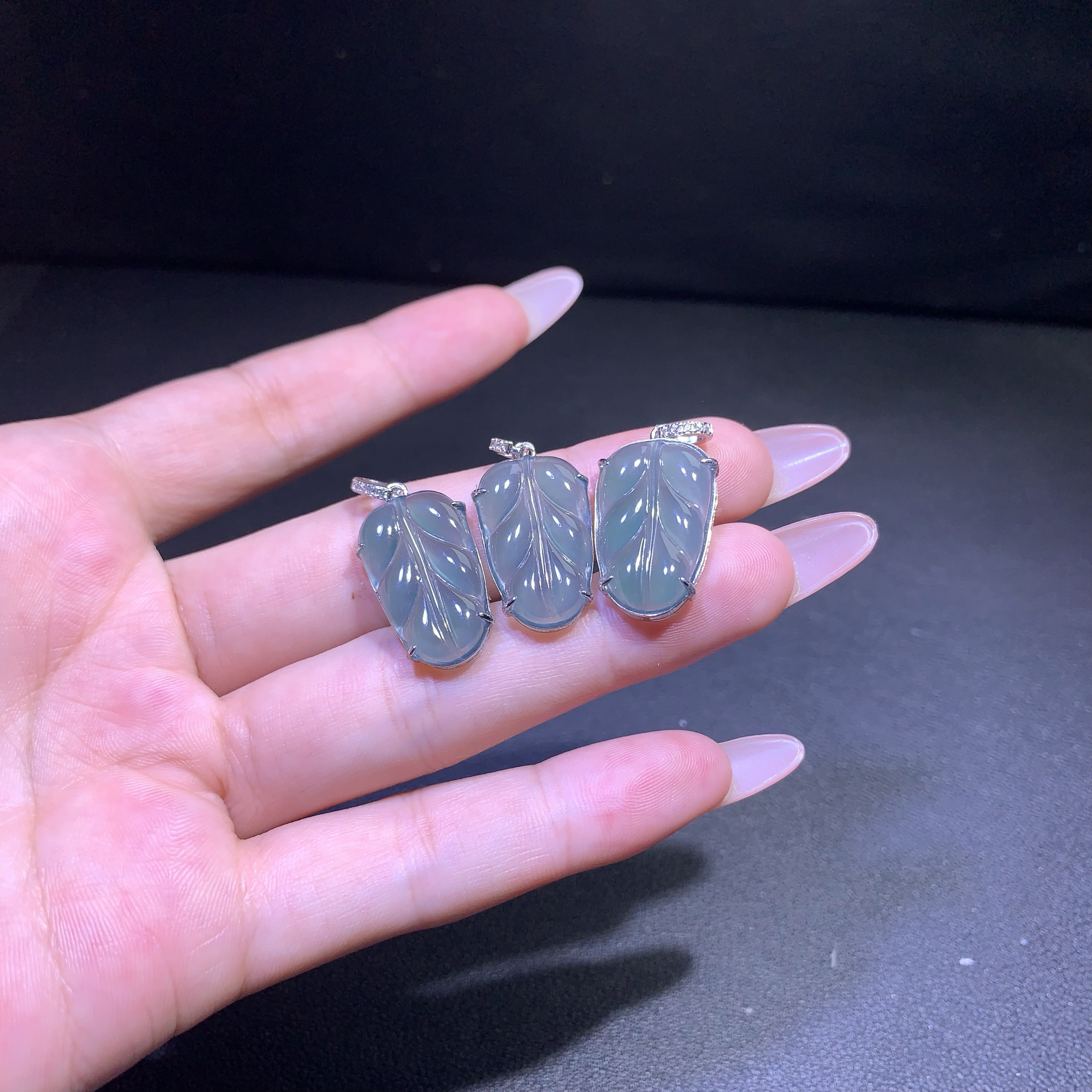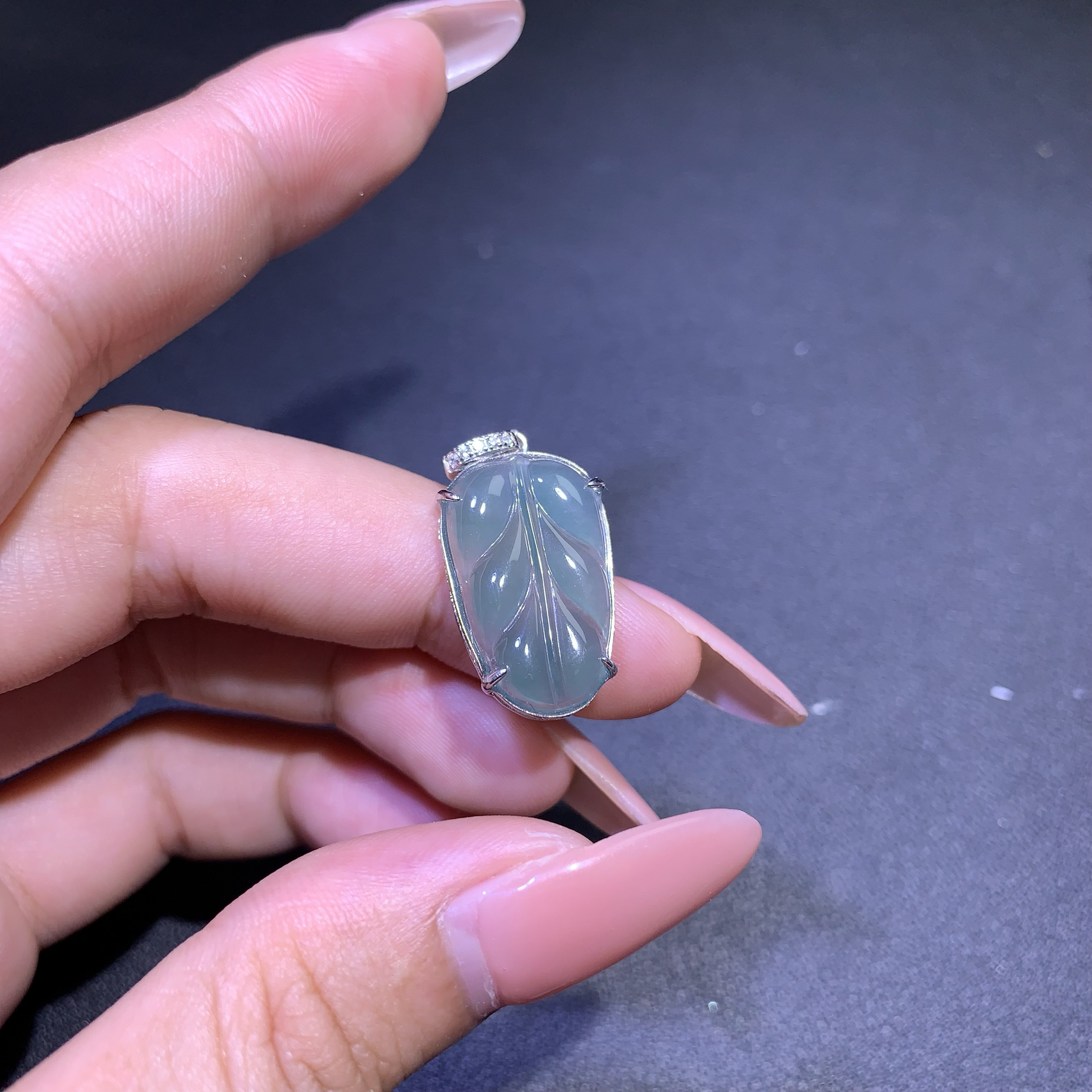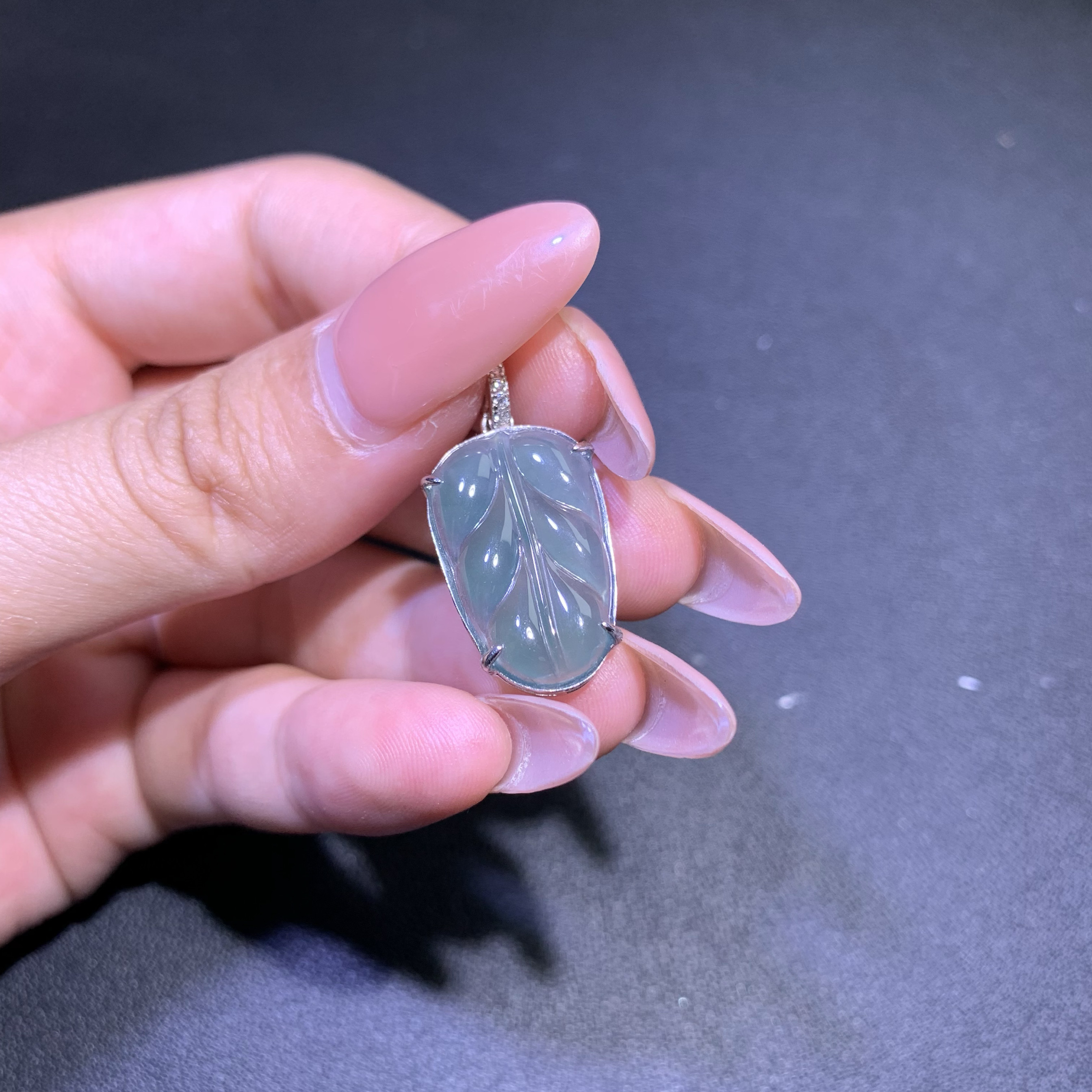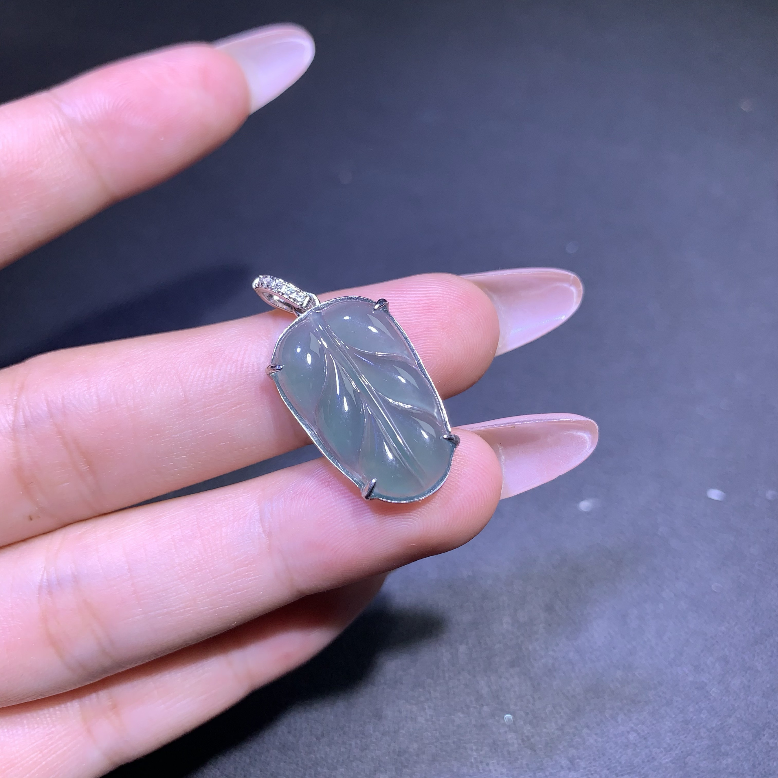 天然A货翡翠高冰蓝水叶子吊坠S925纯银镶送礼精选时尚简约百搭款